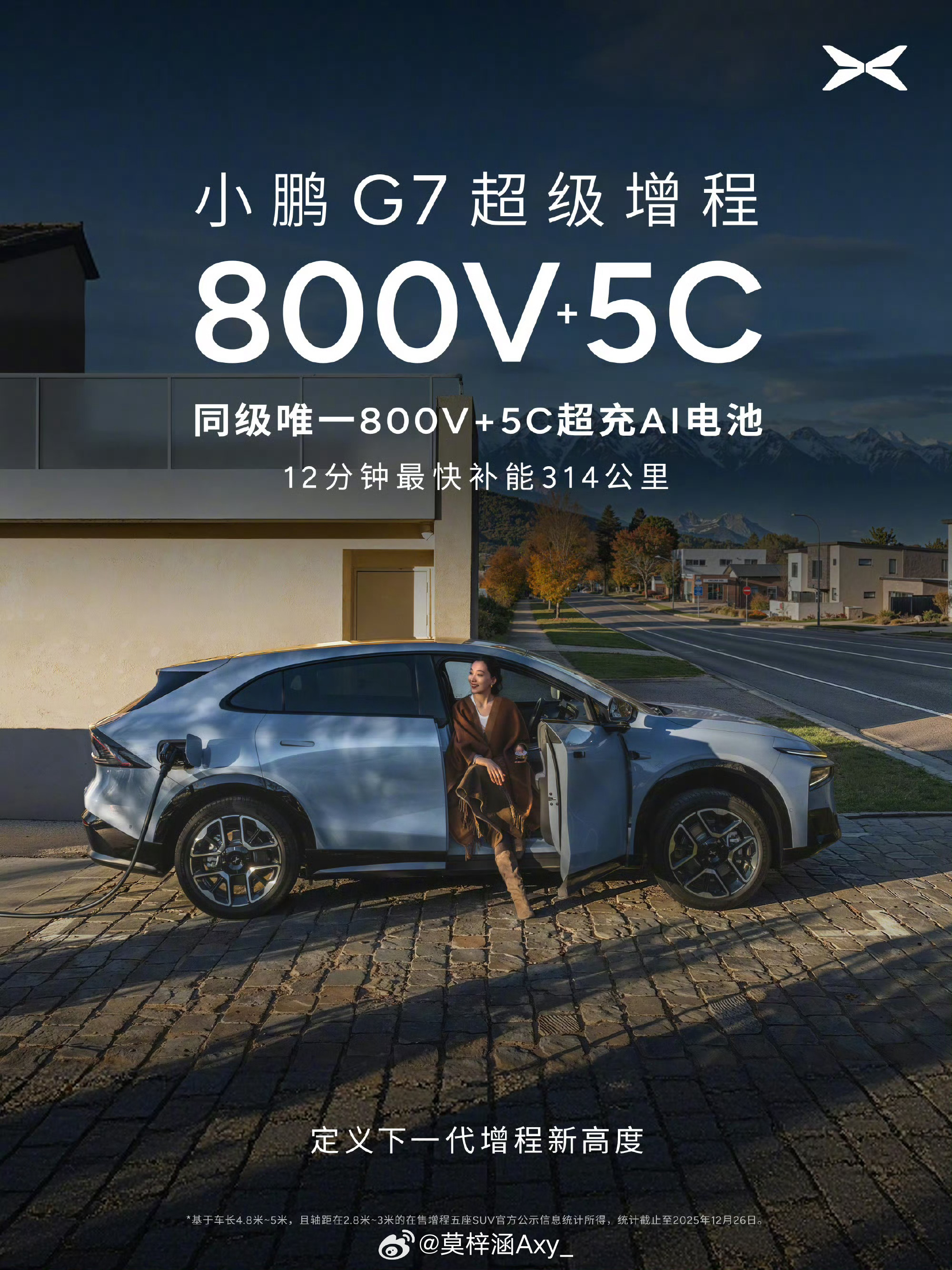1704公里小鹏G7续航长长长长长长长长小鹏G7超级增程以全球最长综合续航1704公里的实力,彻底终结续航焦虑!55.8kWh大电池+60L大油箱的双重配置,纯电续航430公里,馈电油耗仅5.9L/100KM,市区长途随心切换。800V架构+5C超充,12分钟充电314公里,补能效率拉满。更靠谱的是,零下20度极寒天气实测续航1108.3公里,冬天用车也不用慌了!汽场全开新能源汽车