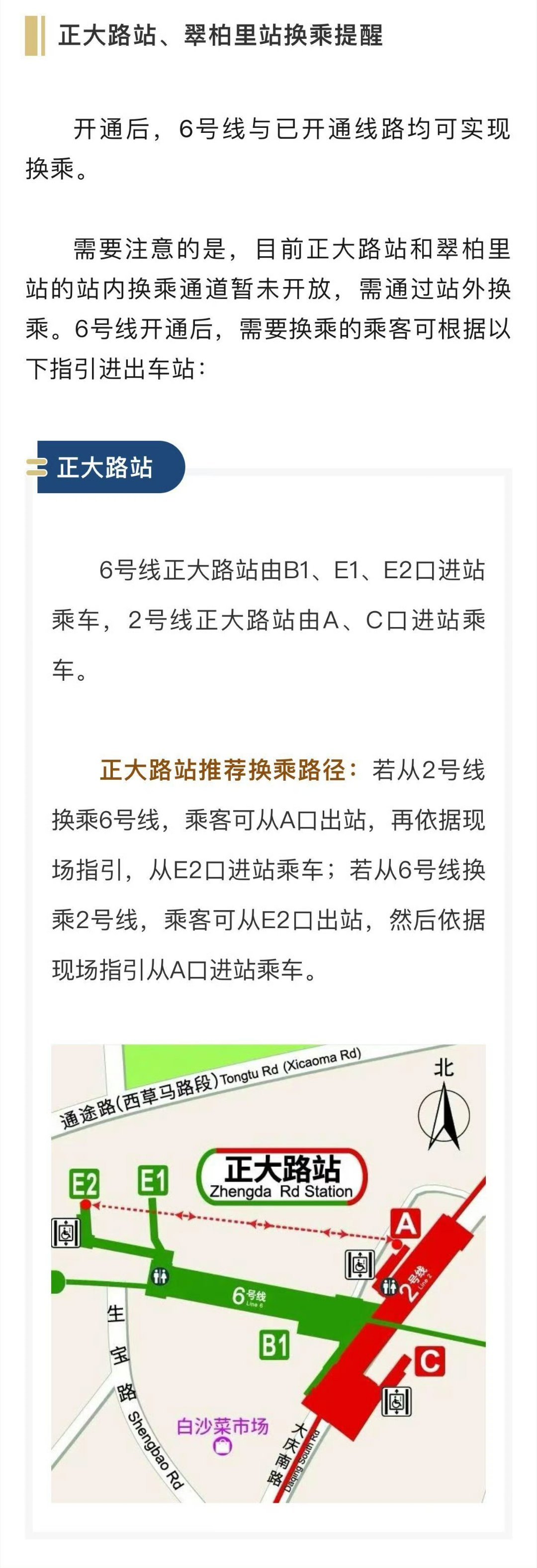 宁波地铁6号线重要出行信息 ,票价多少?还有出站换乘?官宣‼️宁波地铁6⃣️号线1.16开通🚇出行信息日盼夜盼宁波地铁6⃣️号线终于要开通啦‼️就在明天2026年1月16日开通运营首末班车时间?票价?换乘?这些出行信息👀坐地铁前先码住🌟⏰运行时间两端始发:古林站↔红联站首班车:6:00末班车:22:00🎫票价里程分段计价票制实行“递远递减”票价原则全线网最高💰10元🚇班次间隔高峰期:6分钟平峰期:8分钟低峰期:10分钟⚠️特别提醒有2个站暂时不能站内换乘❌要出站换乘📍正大路站(6/2号线)6号线进站:B1、E1、E2口2号线进站:A、C口换乘🔁2号线→6号线:A口出,按指引从E2口进6号线→2号线:E2口出,按指引从A口进📍翠柏里站(6/4号线)6号线进站:F、G口4号线进站:A、C口换乘🔁4号线→6号线:站厅无障碍电梯出,按指引从F口进6号线→4号线:F口出,按指引从无障碍电梯通道进宁波地铁6⃣️号线有没有经过你家或者公司呀