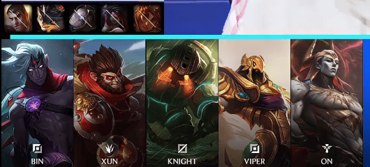 BLG选用:Bin亚恒;Xun猴子;Knight沙皇;Viper韦鲁斯;ON泰坦