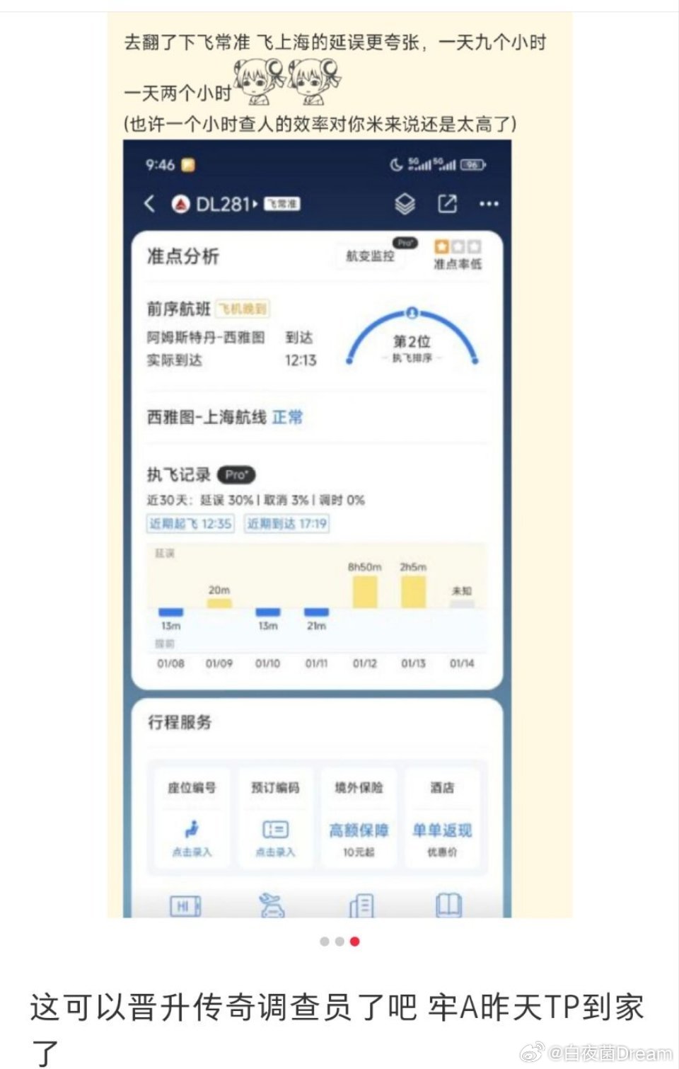牢a可以晋升传奇调查员了。有网友说昨天西雅图航班延误。这是什么情况?