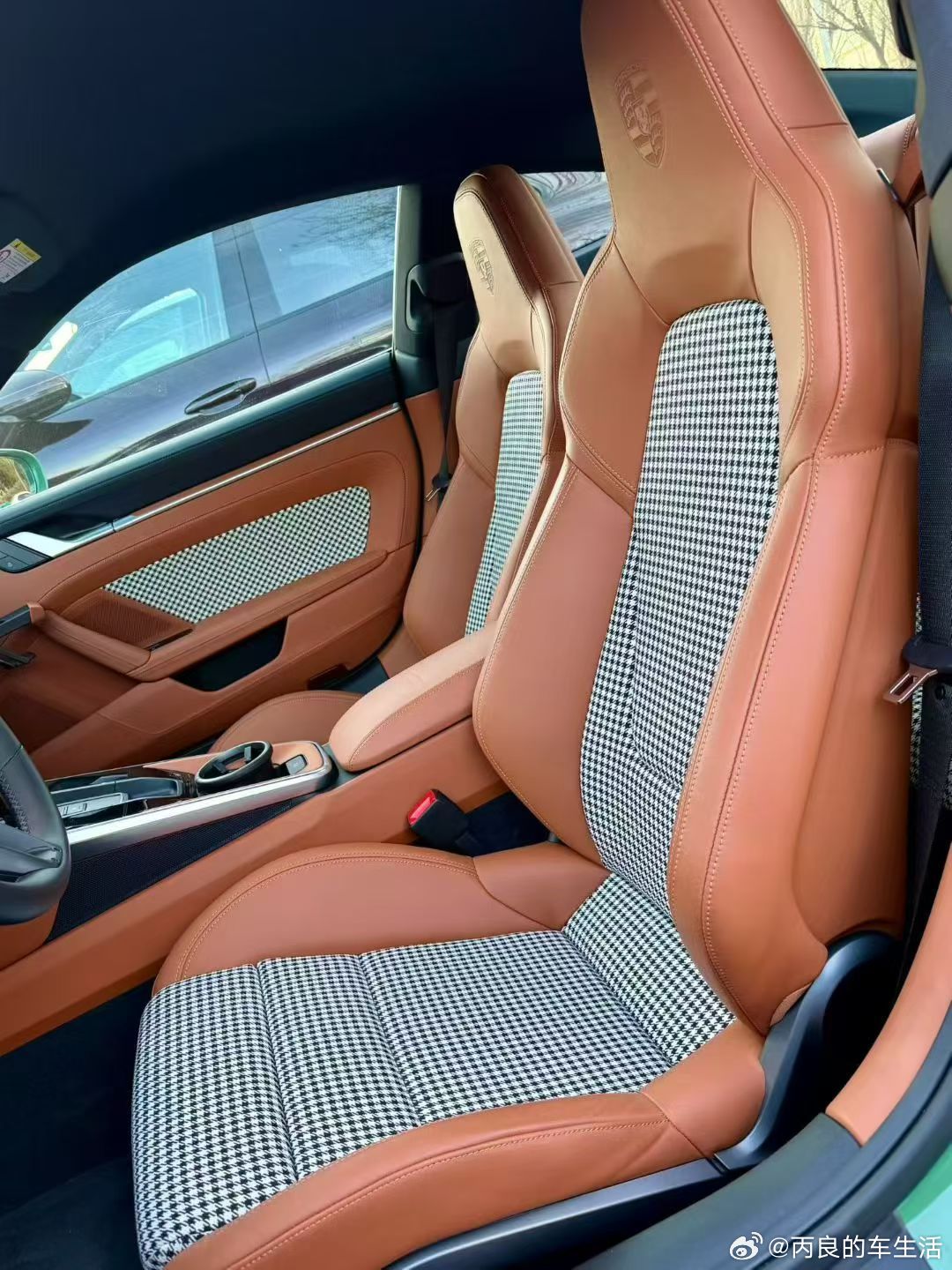 看到一台高定版本911,外观颜色就花了12万块钱 配千鸟格的内饰,真有品味,选配