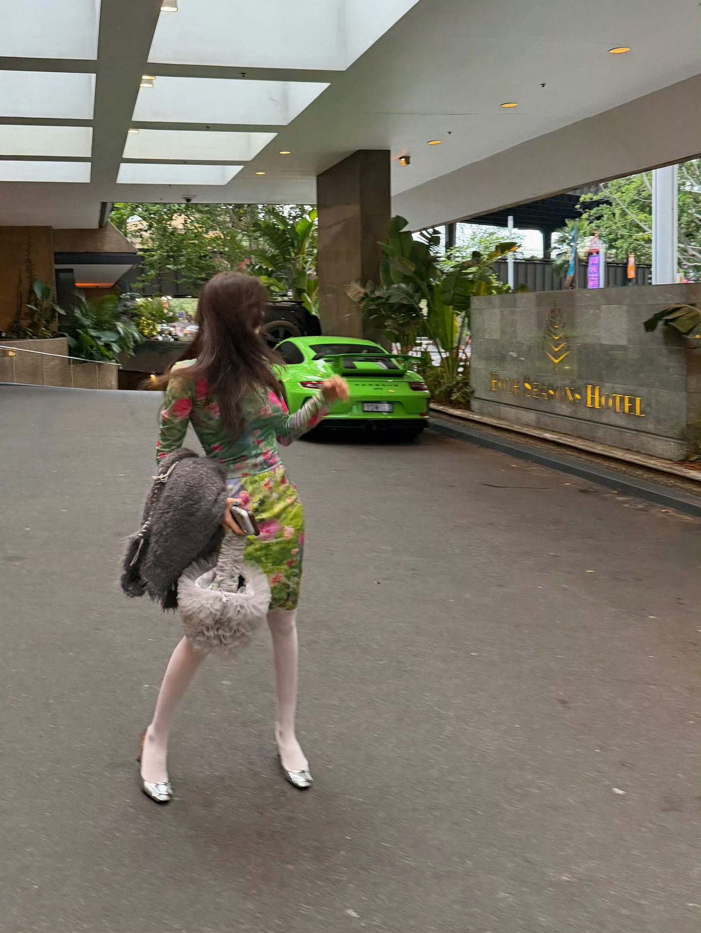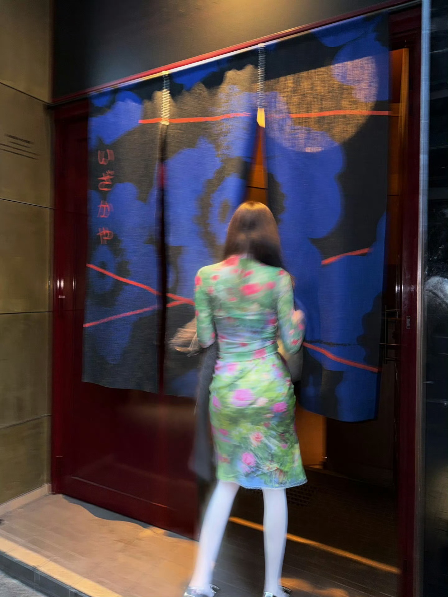 在日式餐厅里,红发美眉与萌宠摆拍,尽显时尚与可爱!🍣🐰💃
