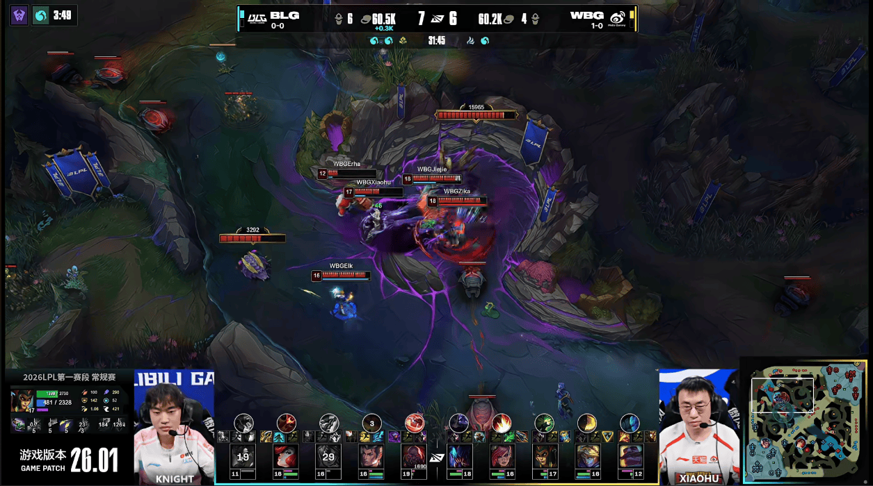 虎扑01月15日讯GAME3:BLG蓝色方;WBG红色方