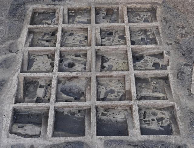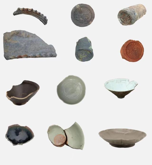明清时期遗迹则有灰坑、灰沟、房址、道路及磉墩(古代木构建筑墩台式地基)等,其中一组磉墩排列规律,呈现出面阔五间的结构。出土遗物主要为青花瓷片,可辨器型包括碗、杯、盘等。