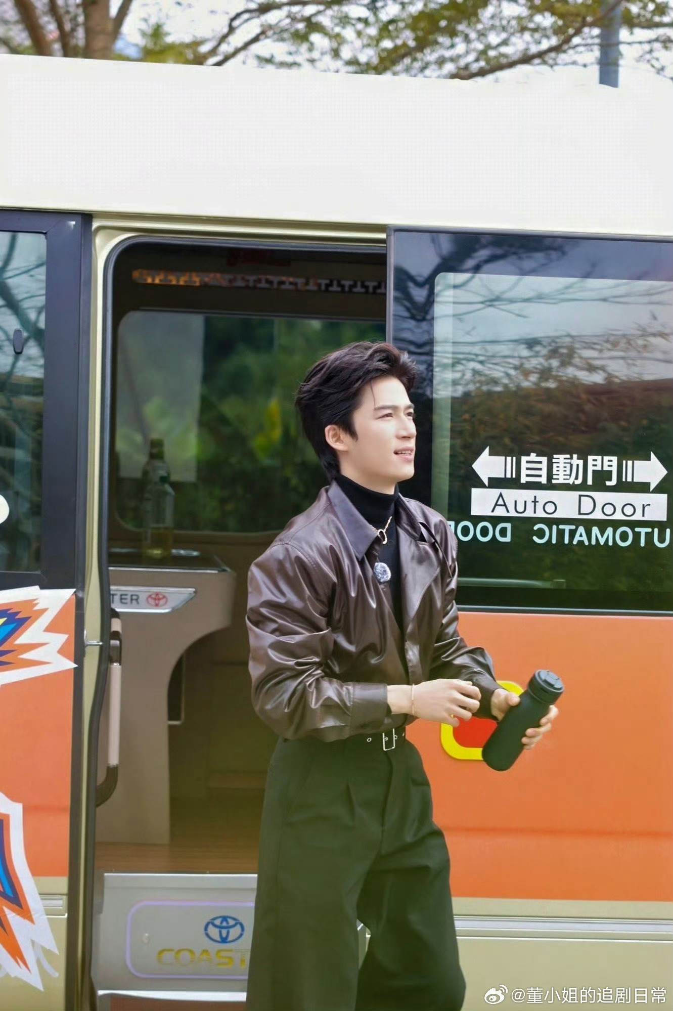 王星越走哪儿都带着保温杯王星越这生图简直帅的没话说,状态真的好抗打!穿皮衣带保温杯造型也太帅了