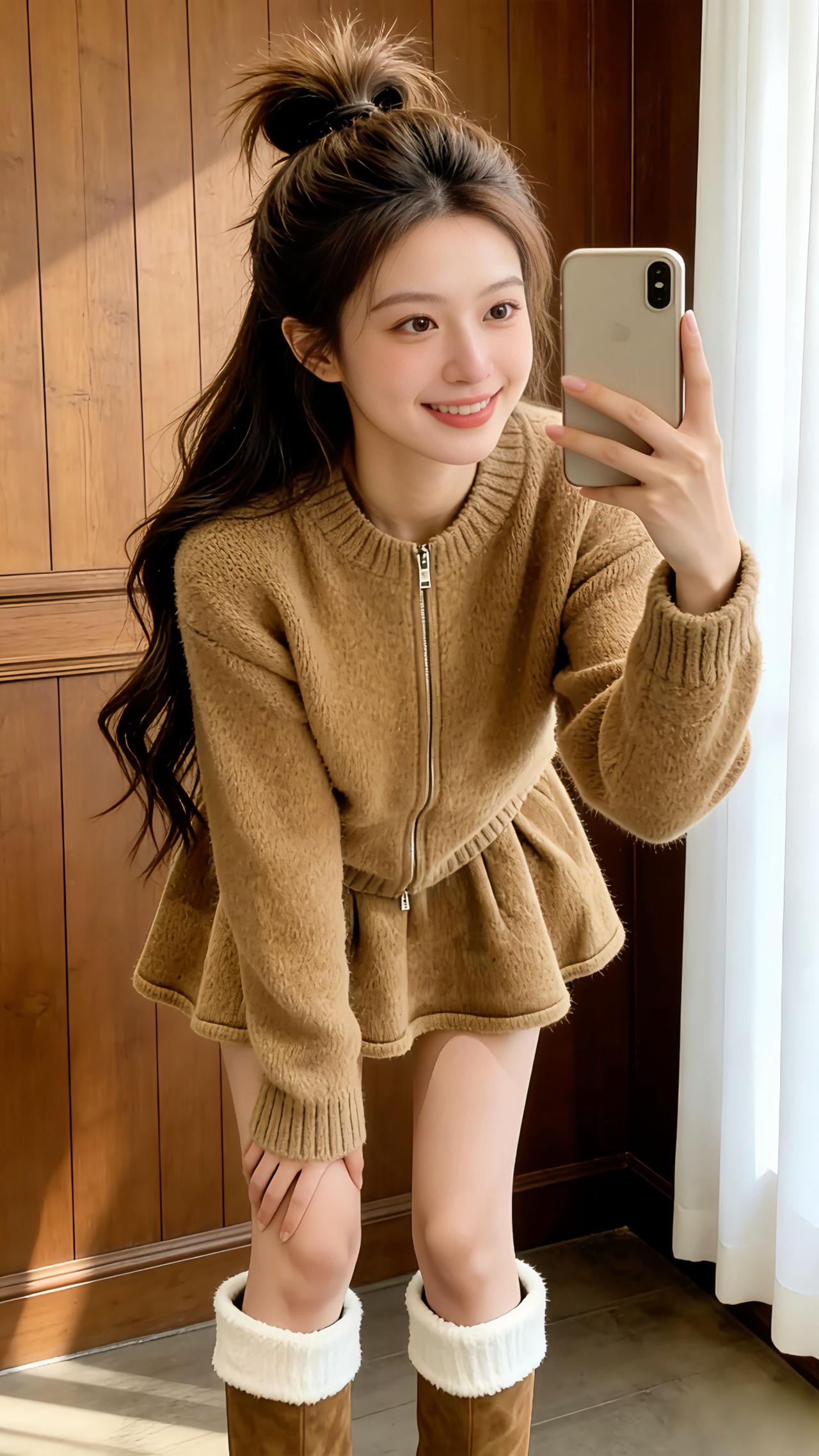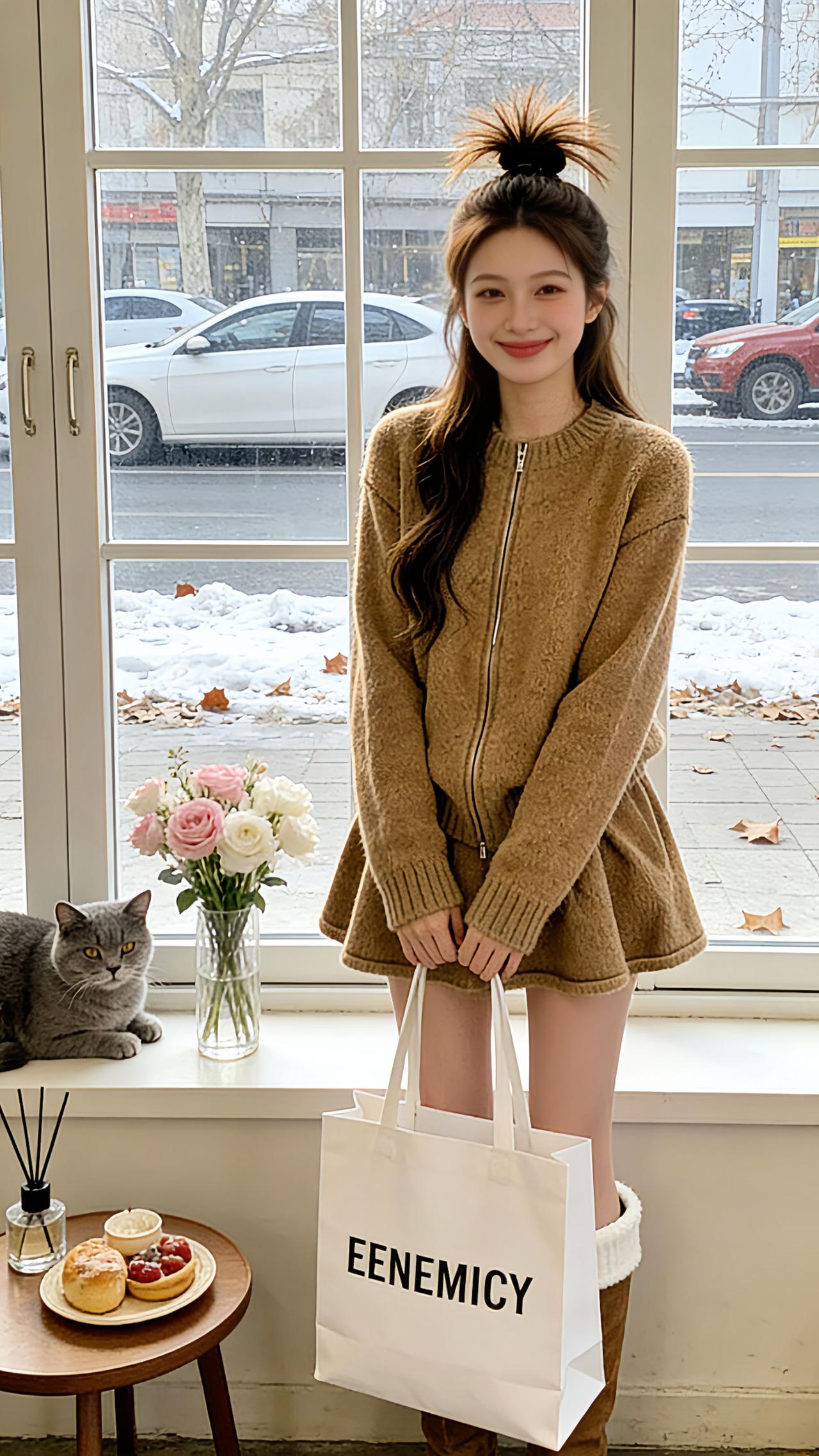 Danny梳着蓬松半扎丸子头,身着焦糖色开衫毛衣短裙套装站在冬日窗边,拉链设计简约又利落,高腰短裙勾勒出纤细腰线,搭配棕色毛绒靴口长靴,指尖轻指模特同款套装时,窗外残雪落叶让整套穿搭的韩系暖意拉满。 软糯针织面料贴肤舒适,宽松开衫藏肉显瘦,短裙的灵动弧度添了俏皮感,不管是日常出街还是探店打卡,这套两件套都能穿出温柔韩系气质,秋冬的氛围感穿搭就靠它打造。 每日搭配分享👗时尚穿搭 冬日韩系氛围感穿搭 微胖女生冬日衣服测评 就要穿得漂漂亮亮去聚会 过年穿什么 @DOU+小助手 @抖加🔥上热门🔥dou+🔥热点宝 @我要上热门