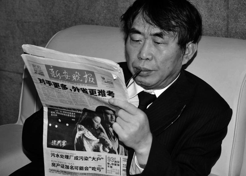 聂卫平正在阅读《新安晚报》。(资料图片)