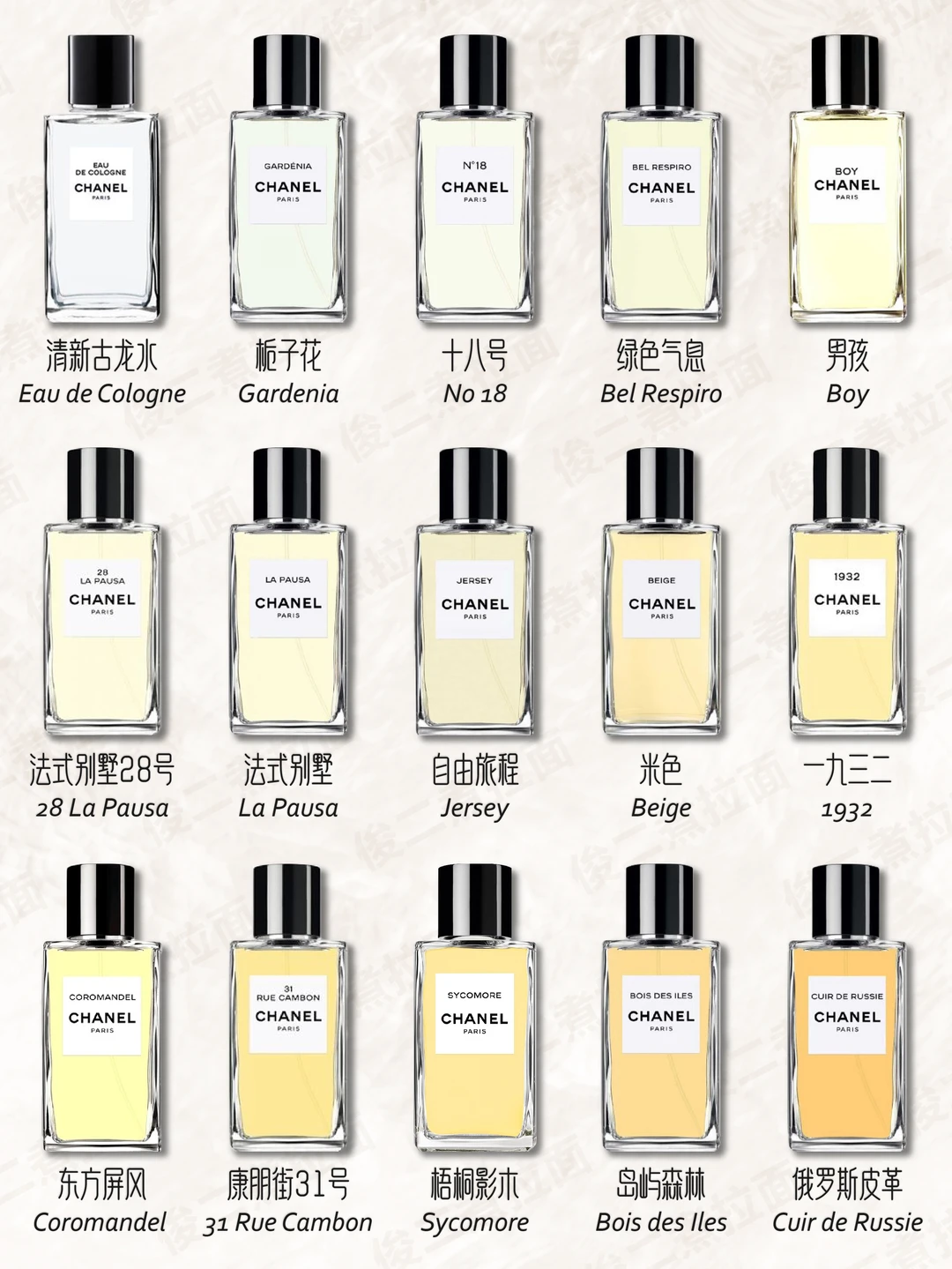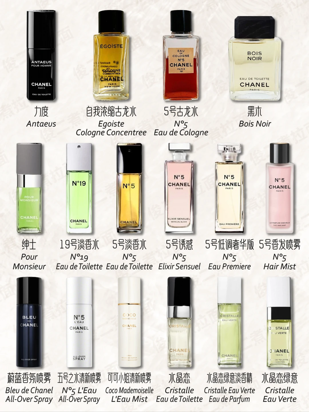 👃🏻👁️🖐🏻️👂🏻👅在香奈儿公司,所有的香水都不是按部就班地依循生产程序进行调制的,而是充分调动香水调配师的嗅、视、触、听、味等神经,用身、心、灵去感受、体验产品,用全部心智去创造产品。可以这样直接地说,香奈儿5号香水是由调制师用自己的鼻子调制出来的,从而保证了香奈儿5号香水既与人们的嗅觉习惯相吻合,又具独特的品位与情调。正如香奈尔夫人自己所形容的:“这就是我要的。一种截然不同于以往的香水;一种女人的香水;一种气味香浓、令人难忘的香水。”此外,为香奈儿工作的调香师Jacques Pollge一直坚持其一贯的独特配料,使用在格拉斯出产的一种茉莉和五月玫瑰。这也为香奈儿香水特有的高品质和馥郁的香味奠定了坚实的基础。与香奈儿一起合作过的调香师包括:Jacques Polge, Henri Robert, Ernest Beaux以及Christopher Sheldrake。