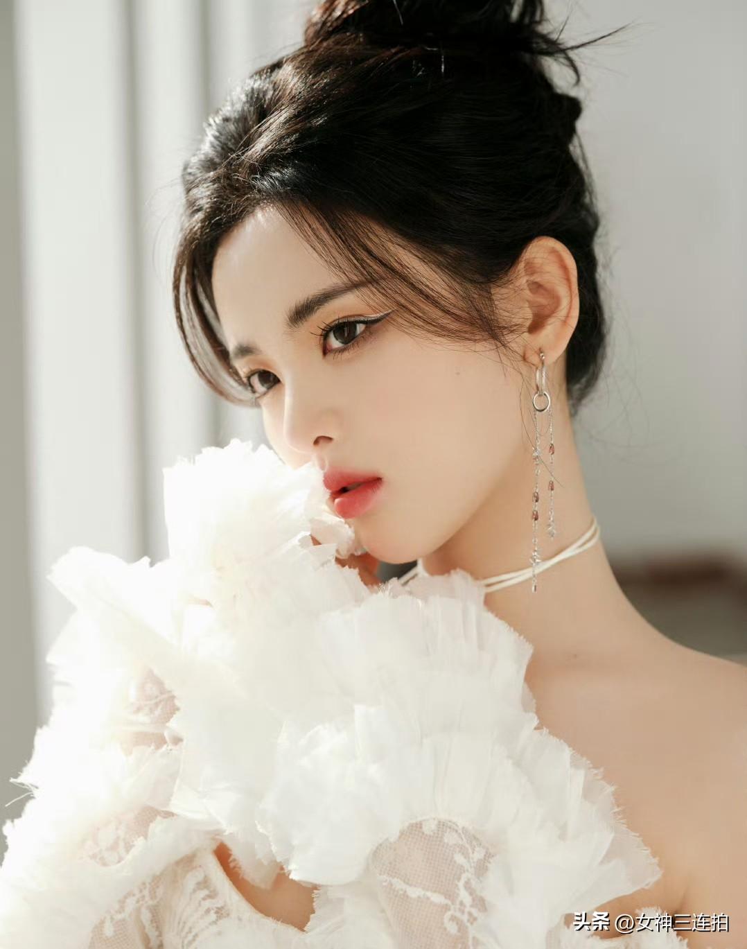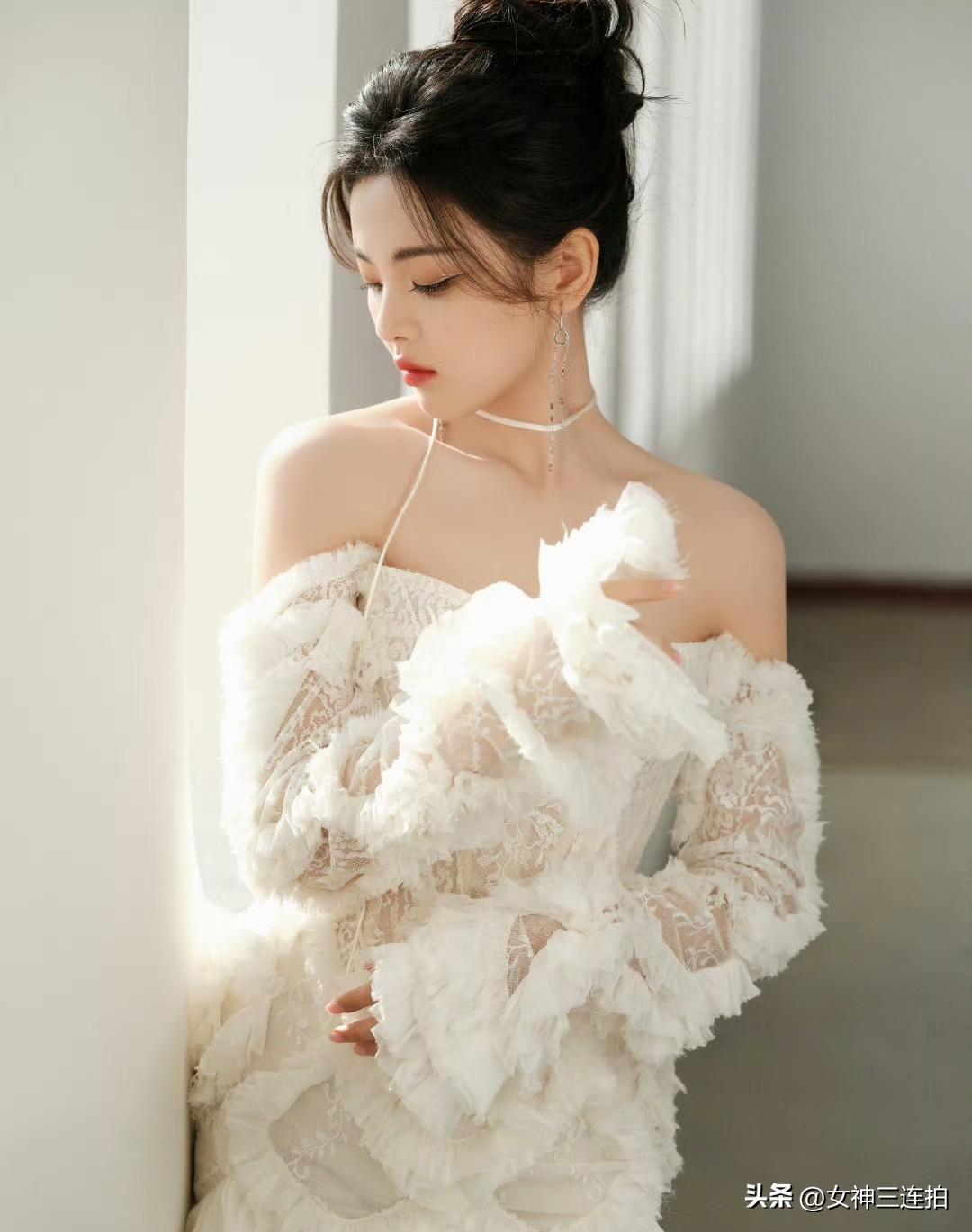 优雅白裙,梦幻蕾丝,女神三连拍👗✨