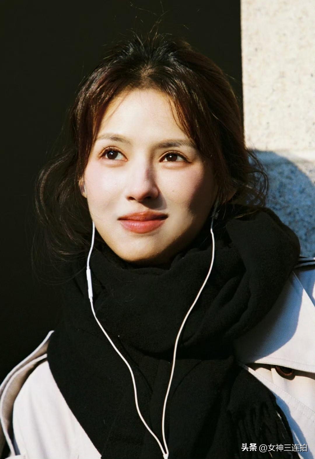 夜晚散步,戴着耳机听音乐。