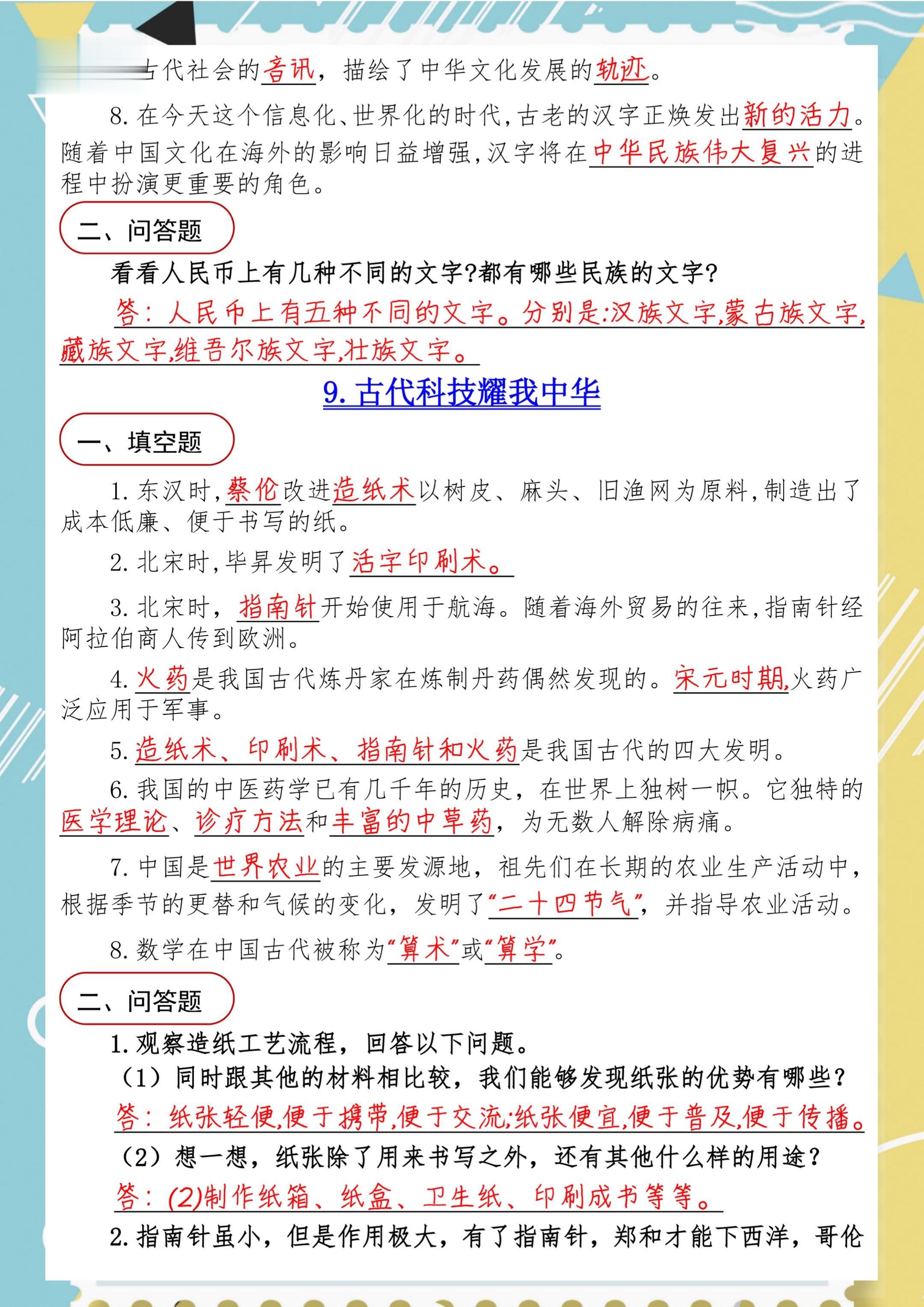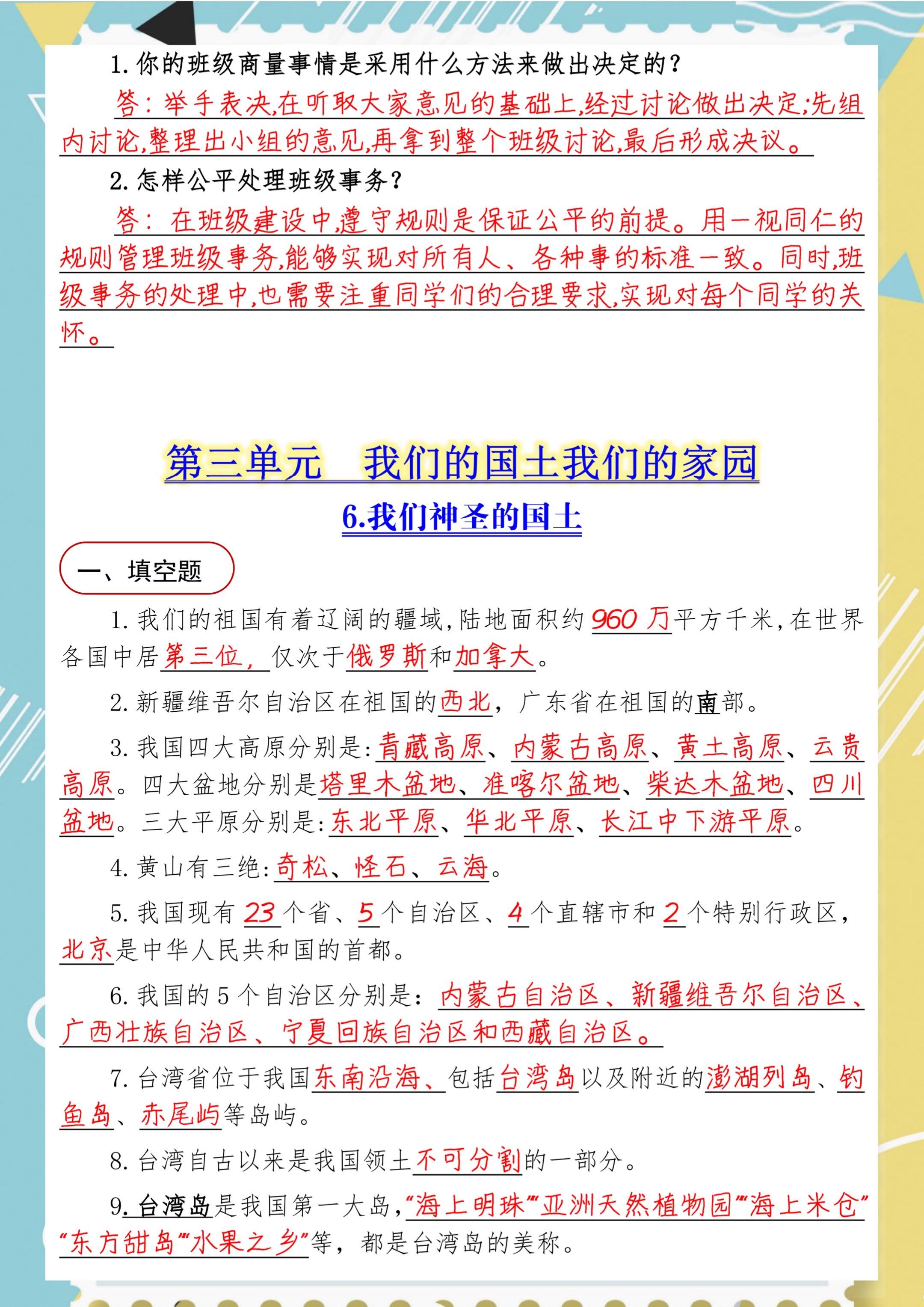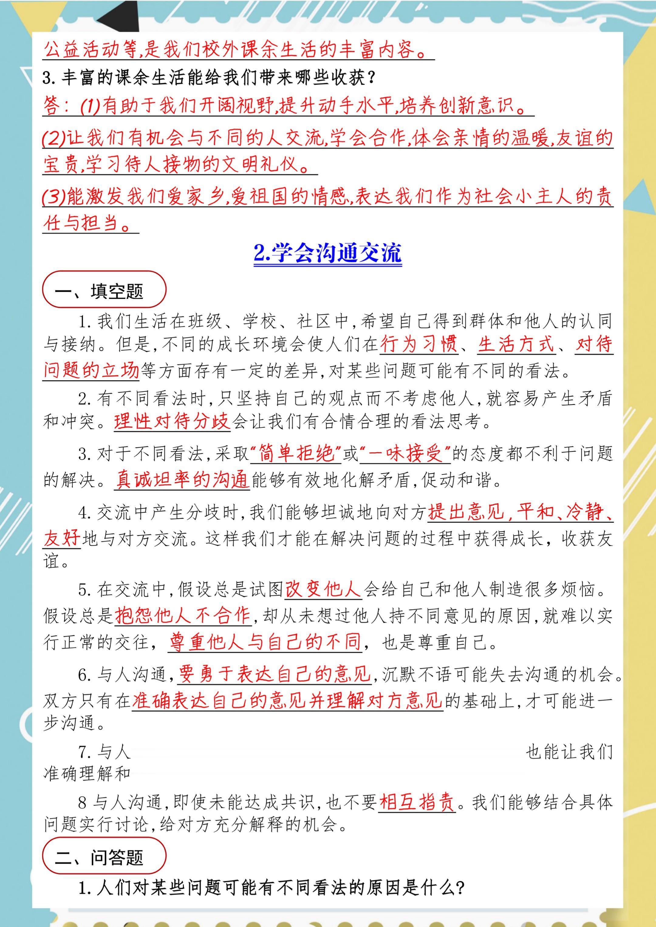 2025年秋小学五年级道德与法治知识汇总。 八方文印店。有需要可以...