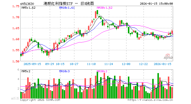 1月15日,港股红利指数ETF(513630)涨1.05%,成交额3.69亿元。当日份额减少6500.00万份,最新份额为100.16亿份,近20个交易日份额减少3.46亿份。最新资产净值计算值为165.36亿元。