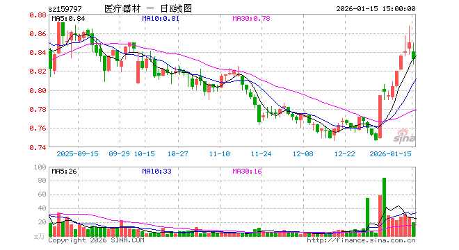 1月15日,医疗器械ETF基金(159797)跌2.12%,成交额1670.83万元。当日份额减少400.00万份,最新份额为4.15亿份,近20个交易日份额增加3300.00万份。最新资产净值计算值为3.46亿元。