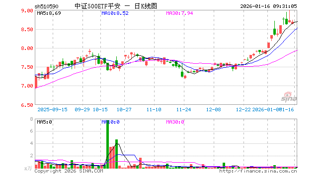 中证500ETF平安(510590)业绩比较基准为中证500指数收益率,管理人为平安基金管理有限公司,基金经理为李严,成立(2018-03-23)以来回报为63.79%,近一个月回报为15.82%。