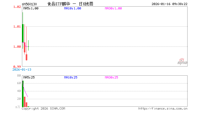 1月16日,食品ETF鹏华(560130)开盘涨0.40%,报1.000元。食品ETF鹏华(560130)重仓股方面,安记食品开盘涨1.04%,一鸣食品跌0.37%。