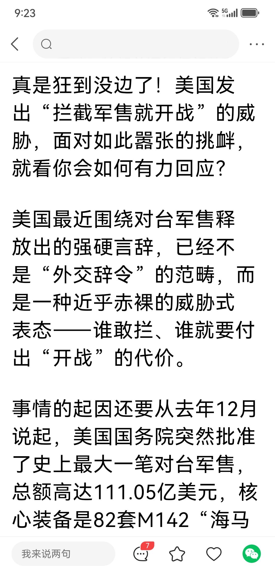 特朗普宣称:谁敢拦截对台军售,就是挑起战争!这无疑是战争贩子露骨的战争恫吓! 台湾是中国领土,这是波斯坦公告、日本投降书和中美建交公报等所明确的国际法规,但美国现在基本不承认了一一提出了“台湾地位不定论”。这个论述和售台武器是破坏中国统一和主权的恶劣行为,堪称敌对行动不为过。 中国有能力有行动去拦截这111亿美元的最大美对台军火案吗? 故而,是否拦截美国对台军售,堪称检验谁是纸老虎的试金石!