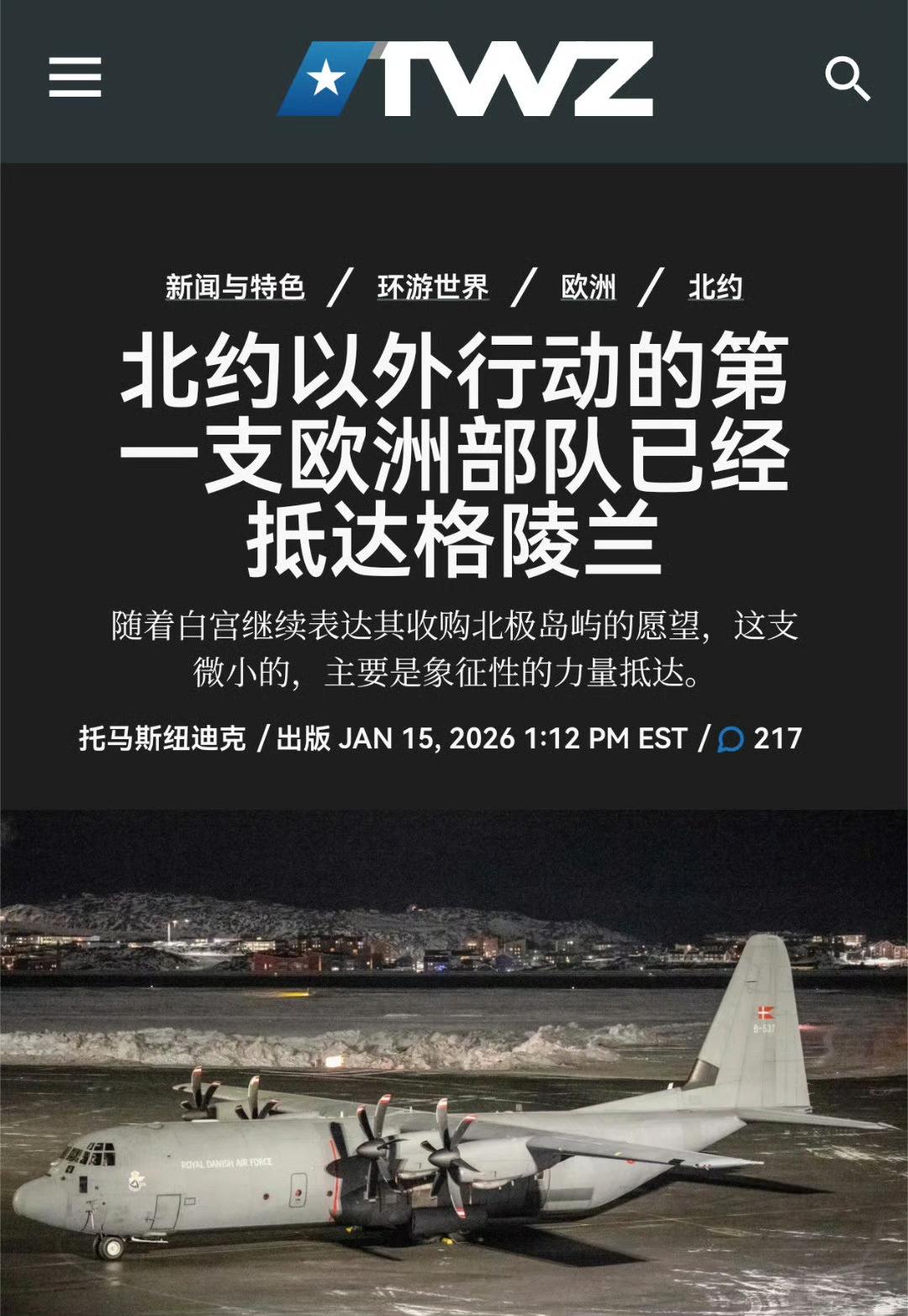 “五国联军抵达格陵兰,号称要保卫格陵兰。联军总人数高达惊人34人!其中法国15人,德国13人,瑞典3人,挪威2人,英国1人…… 能不能保卫不重要,展现态度很重要,赶码也是说到做到[白眼] 大不了这34人在白雪凯凯的岛上组团与M军打场雪仗……