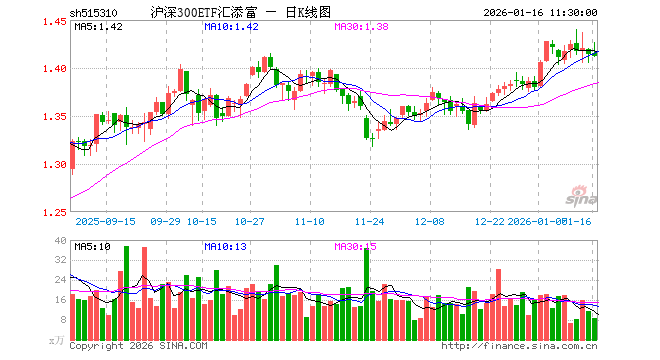 1月16日,截止午间收盘,沪深300ETF汇添富(515310)跌0.14%,报1.412元,成交额1214.53万元。沪深300ETF汇添富(515310)重仓股方面,宁德时代截止午盘跌0.21%,贵州茅台跌0.29%,中国平安跌1.41%,招商银行跌0.38%,紫金矿业跌0.78%,新易盛跌0.18%,中际旭创涨0.35%,美的集团涨0.18%,东方财富跌0.29%,长江电力跌0.89%。