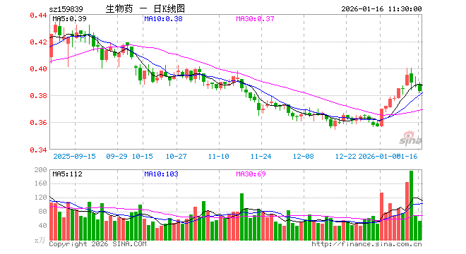 1月16日,截止午间收盘,生物医药ETF汇添富(159839)跌1.03%,报0.383元,成交额2063.97万元。生物医药ETF汇添富(159839)重仓股方面,药明康德截止午盘涨1.32%,长春高新跌1.04%,复星医药跌0.83%,康龙化成跌2.38%,上海莱士跌0.78%,泰格医药跌2.57%,百利天恒跌0.76%,甘李药业跌0.70%,爱美客跌1.40%,智飞生物跌2.32%。