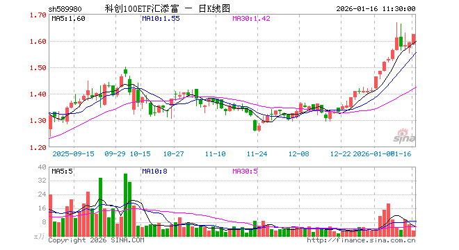 1月16日,截止午间收盘,科创100ETF汇添富(589980)涨1.88%,报1.623元,成交额463.15万元。科创100ETF汇添富(589980)重仓股方面,华虹公司截止午盘涨1.67%,百济神州跌0.71%,东芯股份涨1.92%,睿创微纳跌0.74%,翱捷科技跌1.85%,安集科技涨2.25%,中科飞测涨7.79%,源杰科技跌0.68%,芯源微涨5.65%,云天励飞涨0.05%。