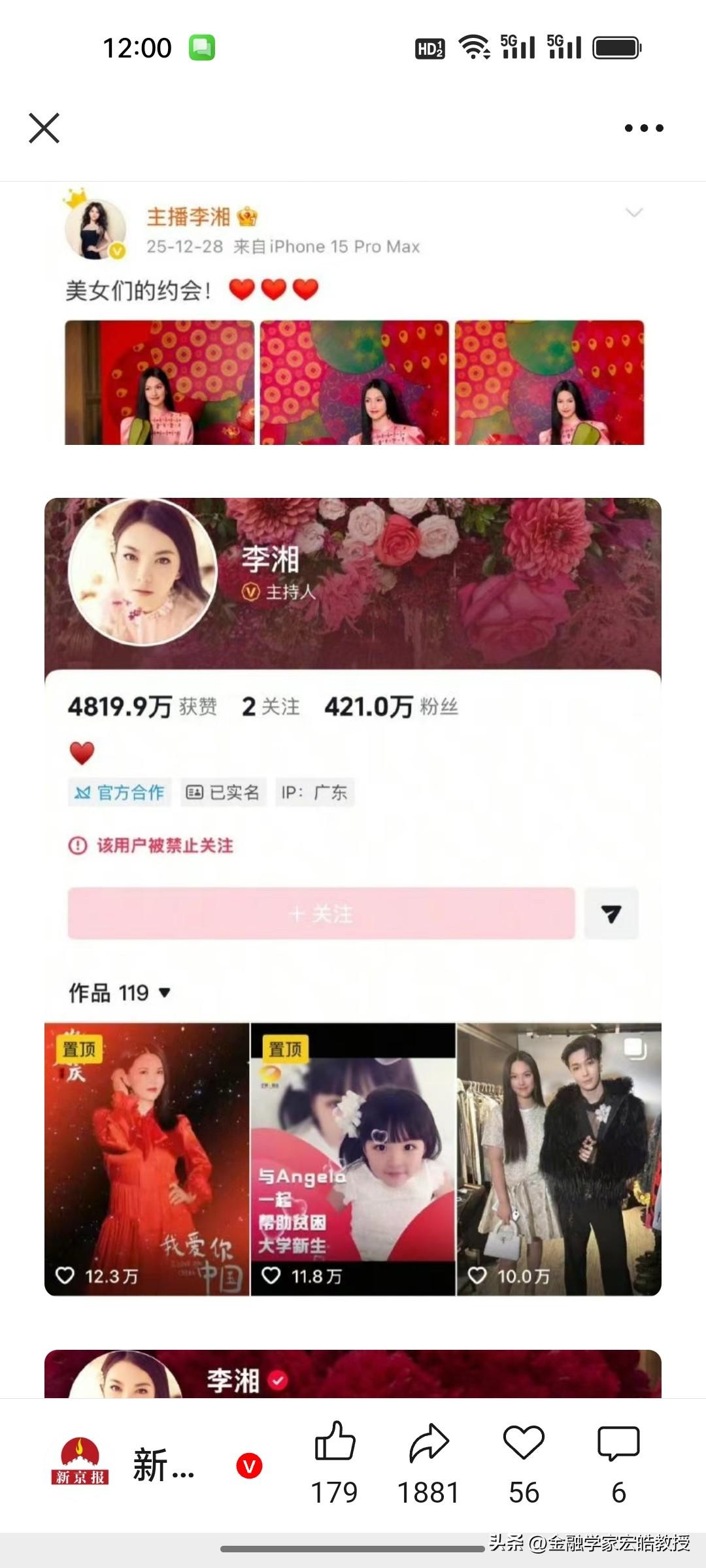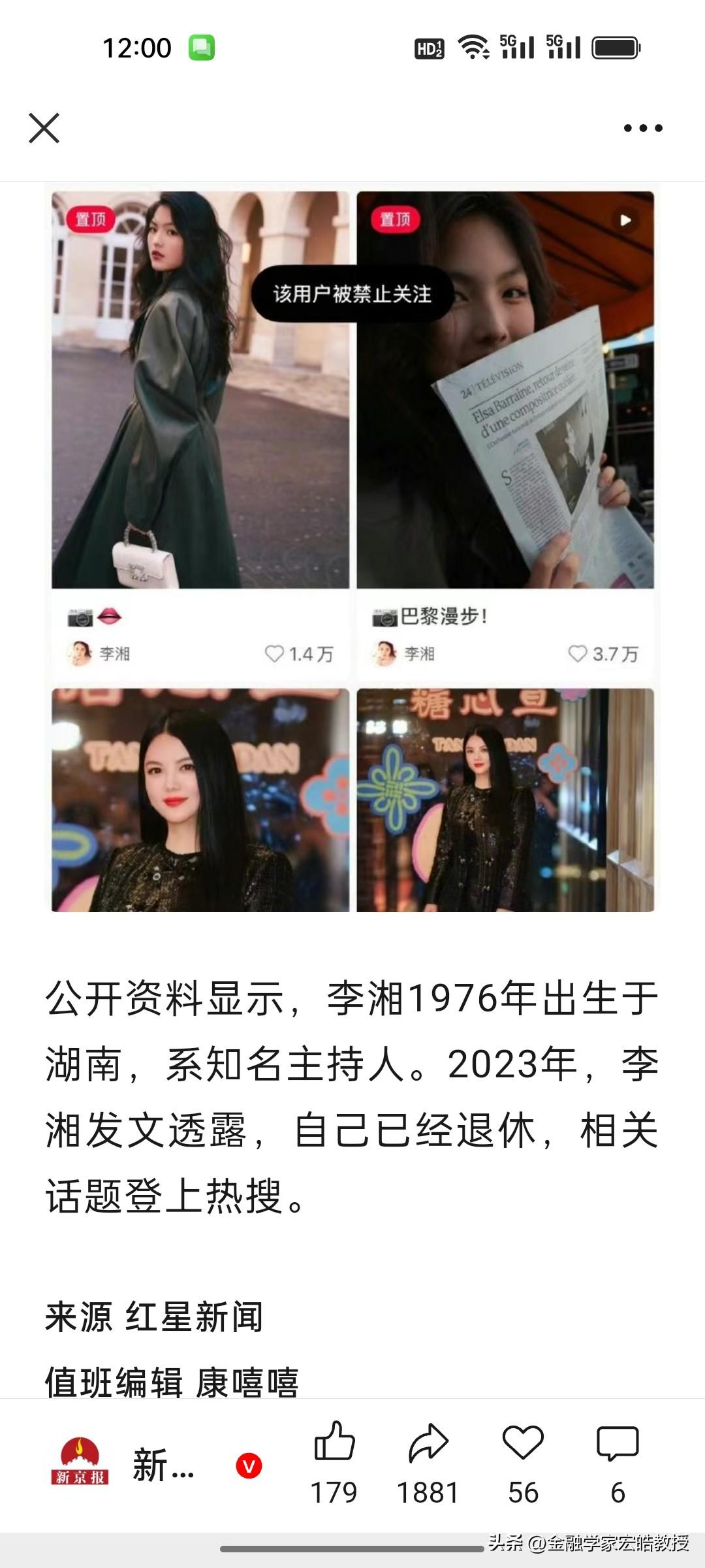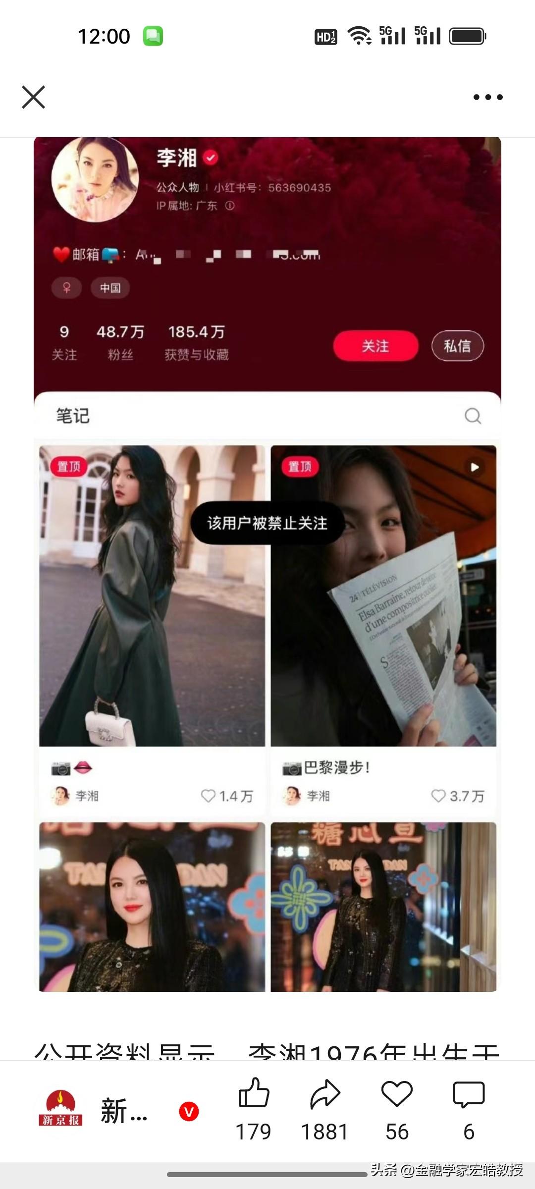 突发!李湘多个社交平台被禁止关注,理由不难猜,应该跟网红蓝战非之前的言论而禁止关