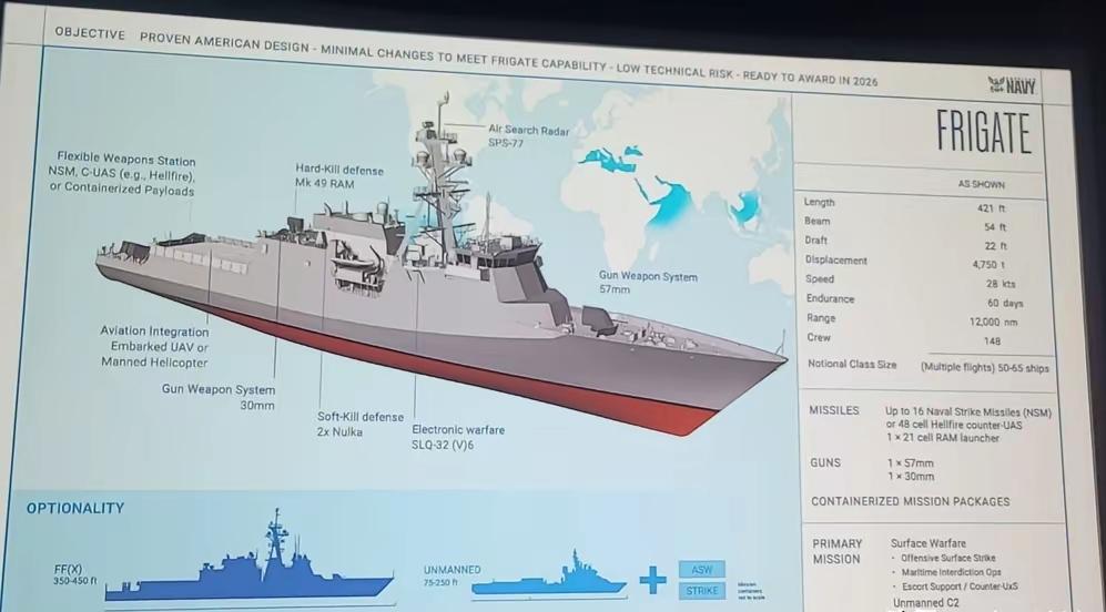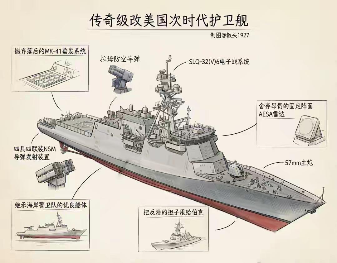 "模块化不是借口,火力贫瘠才是原罪!" 美海军新型护卫舰设计图引爆争议:4750吨舰体仅配57mm舰炮+16枚反舰导弹,两门30毫米副炮、一套拉姆近防导弹发射器、各种对抗措施系统以及直升机飞行甲板。舰尾预留了安装集装箱化武器的空间,可以放置反无人机武器或其他导弹。零垂发设计被嘲"海上纸老虎"。最扎眼的是舰尾"灵活武器站"——战时可以放置反无人机武器或临时加装4单元MK70垂发,但火力仍不及054A三分之一。 三大致命伤: 1. 防空裸奔:仅靠"海拉姆"近防,区域防空能力归零 2. 反潜阉割:无拖曳声呐+鱼雷发射管,水下成盲区 3. 雷达缩水:沿用海警"海长颈鹿"雷达,探测距离砍半 美军辩称"分布式打击"需要低成本舰艇,但军迷怒怼:这配置连海盗船都打不过! 军事科技海军武器设计美军护卫舰 (内容取材于网络)