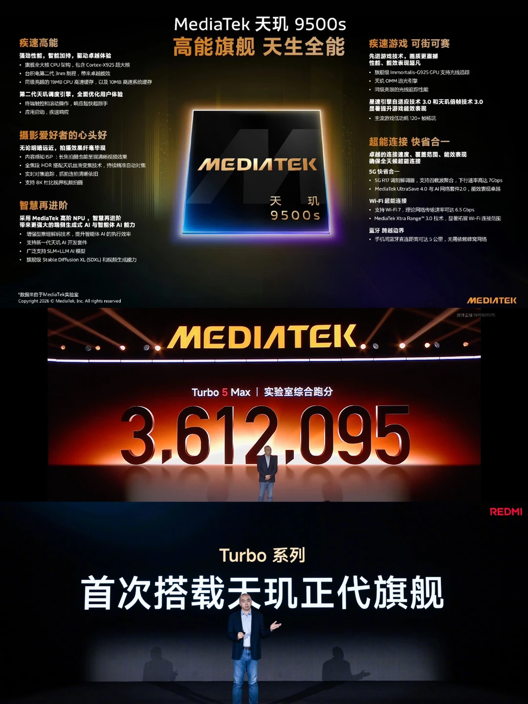 不出意外的话这代Turbo搭载的天玑9500s是这代中端机中性能最强的一个了,说