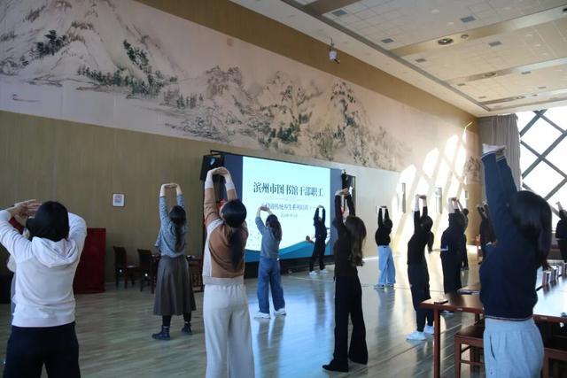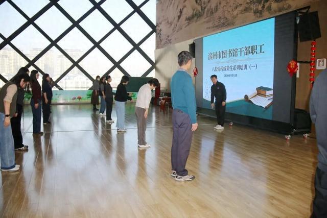 为关怀职工身心健康,提升团队凝聚力,并丰富职工文化生活,2026年1月13日,滨州市图书馆特邀专业师资,为全体职工举办了首期八段锦传统养生培训。
