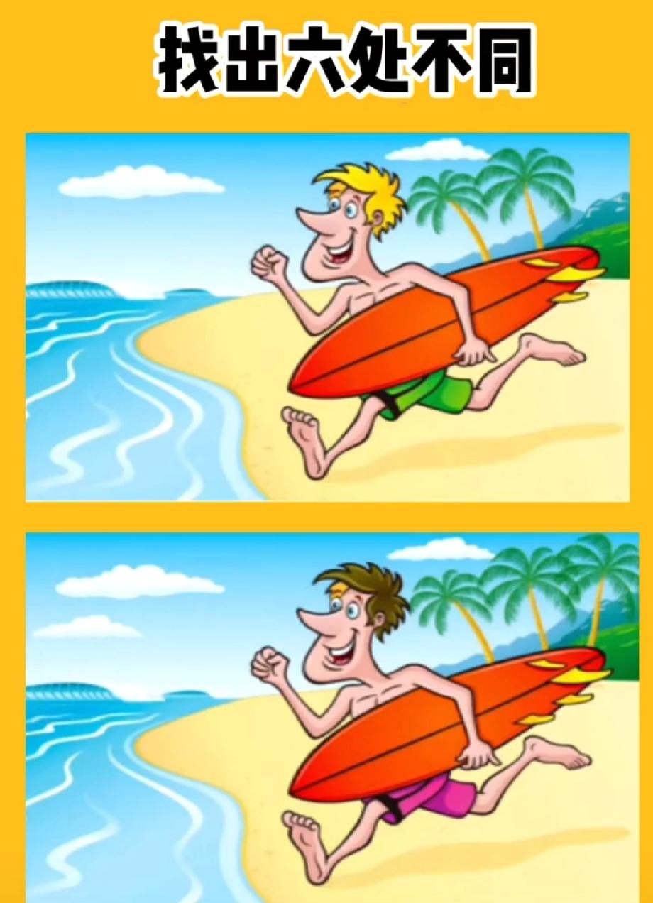 冲浪男孩的6处不同,你能找全吗?