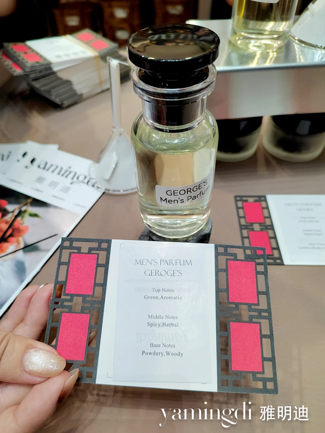 图7雅明迪的这支是调香师为展会即兴创作的香水,味道和伊索的镜之密语前中调特别像!图9的苹果香很好闻,就是贵了点!其它几支也是各有特色…