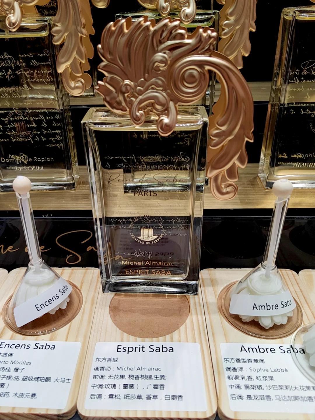可能是秋冬季到来的原因,几乎每家展出的香水都有点千篇一律(乌木为主),闻了第一家以后,觉得每个味道都挺有特色,等到闻第二家,第三家,第四家....... 几乎每家的香水都是一个师傅教出来的,气味重叠度达到百分之80,就气味的多元化方面,个人觉得是远不如前几届的。(茶香和竹香等中国香元素几乎都消失了)