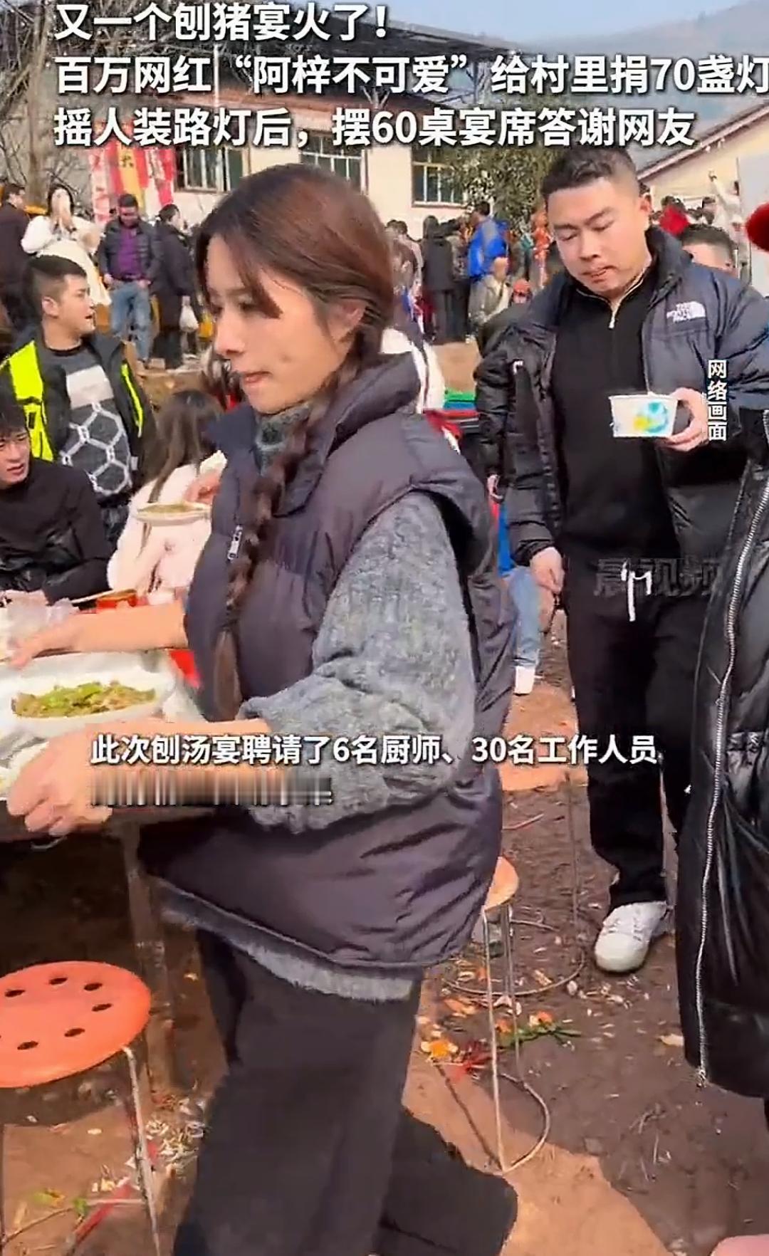 四川百万网红给村里捐赠70盏灯 又一个刨猪宴火了!四川百万网红 给村里捐赠70盏灯,摆60桌宴席答 谢网友帮忙装路灯。 这一次,来自四川的一位百万粉丝网红用实际行动温暖了一个偏远的村庄,也再次证明了“善意”可以穿越屏幕,直抵人心。 事情的起因很简单:这个村庄的夜晚一直都很暗,没有路灯,村民们出行困难,尤其是老人和孩子们。就在大家都在为改善生活条件而焦虑时,这位网红出现了。他不仅在社交平台上呼吁关注,更是亲自奔赴现场,带来了70盏崭新的路灯。那一夜,村庄的天空仿佛也被点亮了,灯光温暖了每一个人的心。 然而,令人感动的不仅仅是灯光,更是那份真诚的感谢。网友们纷纷点赞:“善行不分大小,点亮的不只是灯,更是希望。”“看到这些,心里暖暖的,原来网络也能传递如此正能量。”有人说:“这才是真正的‘带头人’,用行动告诉我们,善良可以传递,温暖可以扩散。” 更令人深思的是,这场善举背后折射出的人性光辉。现代社会,物质丰富,但精神层面的关怀却常常被忽略。而这位网红用实际行动,打破了“网络虚拟”的隔阂,让善意成为连接人与人之间最坚实的桥梁。或许,我们每个人都可以是那盏“灯”,在自己力所能及的范围内,点亮他人的生活。 这次捐赠事件也引发了网络上的热烈讨论:有人感叹“善行无大小,点滴皆温暖”;有人反思“我们是不是也该多关注身边的弱势群体?”更有人开始期待,类似的善举能成为一种常态,让社会变得更加温馨。 其实,善意从来都不需要理由。它像那夜空中的灯火,照亮了前行的路,也照亮了我们心中的希望。或许我们都应该从自己做起,用一份善意去温暖身边的人,让这个世界因为我们的行动变得更加美好。 你是否也被这份温暖触动?或许下一次,是你点亮别人的那一盏灯。让我们一起相信,善良的力量可以改变世界。