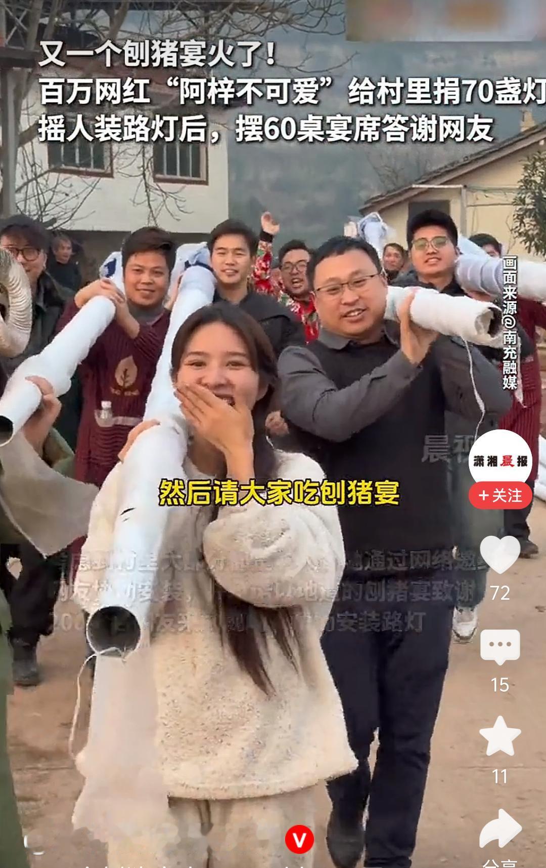 四川百万网红给村里捐赠70盏灯 又一个刨猪宴火了!四川百万网红 给村里捐赠70盏