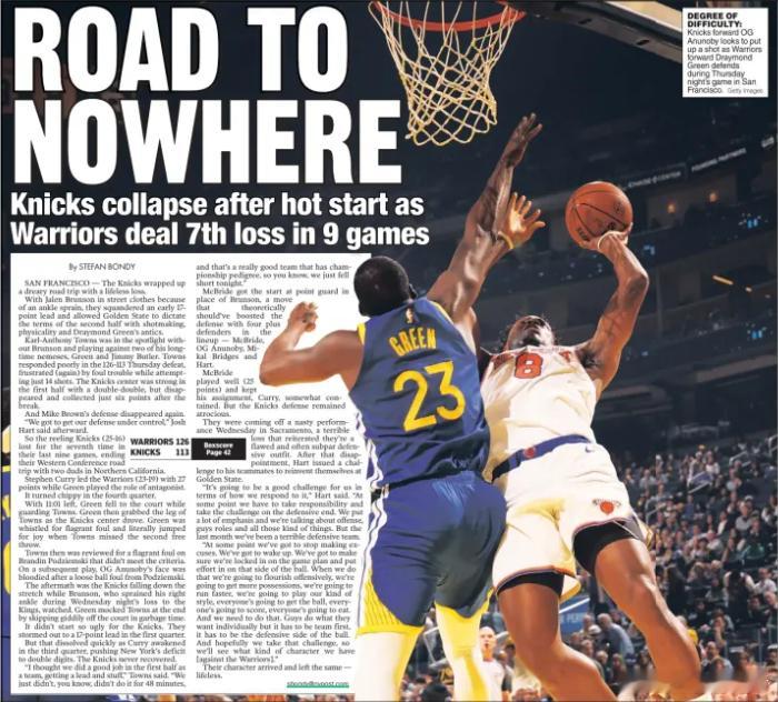 NBA2025-26赛季 常规赛第42场尼克斯113:126金州勇士