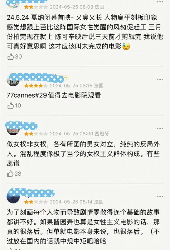 而戛纳电影节的第一批观众,对这部电影的反馈也很快曝光。