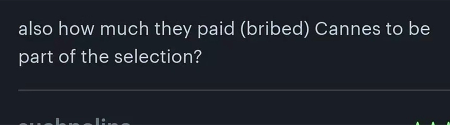 最好笑的是一位外国网友评论:他们花了多少钱贿赂了戛纳才进入这单元的?