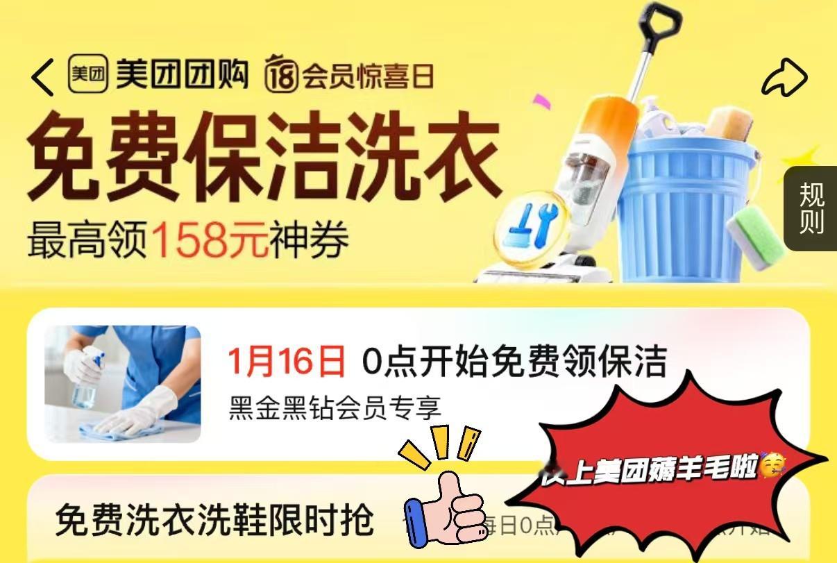 年轻人打扫卫生是有技巧的情侣过年前一招拿捏双方父母年前大扫除不想累成狗?美团保洁帮你一键搞定!给爸妈安排上,省心又讨喜~黑钻/黑金会员冲「18会员惊喜日」,免费上门保洁到手!洗衣美发福利也别错过,单身贵族的精致过年攻略get