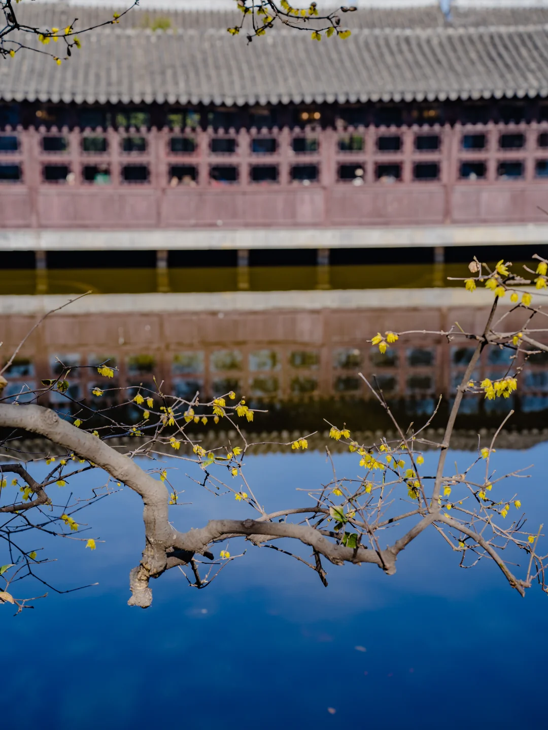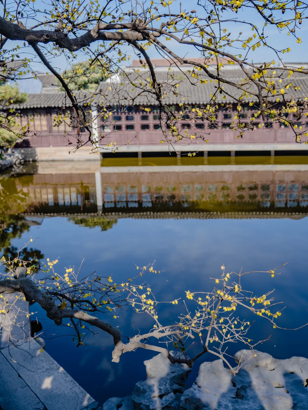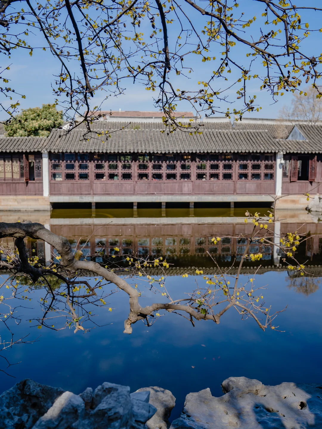腊梅满枝,临水照影。 藏于深巷的艺圃, 那株依偎在池塘边的腊梅, 金黄缀满枯枝, 斜斜地探向水面...... 这方池塘、这株梅, 看过了多少春秋? 它看过文震亨在此描画《长物志》的闲情, 也听过归庄在此酒杯里的慷慨悲歌。 此刻, 它只是静默地开着, 把所有的故事都凝成幽香, 付与流水与清风...... - 📍艺圃 - ✨️感谢薯友-