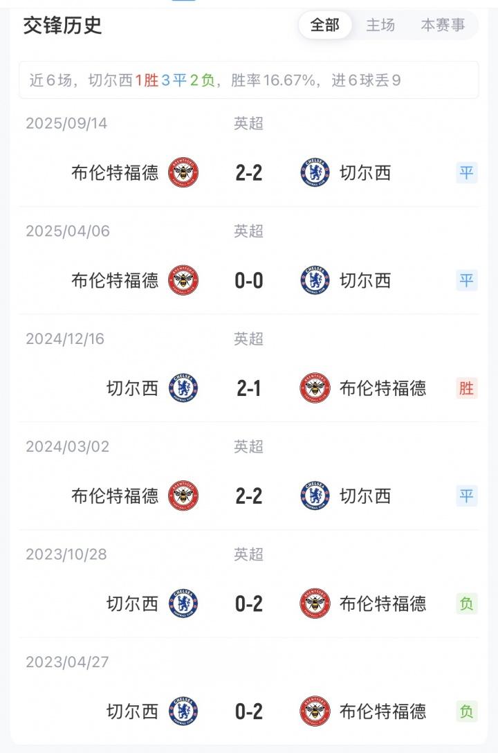 英超21轮比赛过后,切尔西8胜7平6负积31分排在第8,布伦特福德10胜3平8负积33分排在第5。