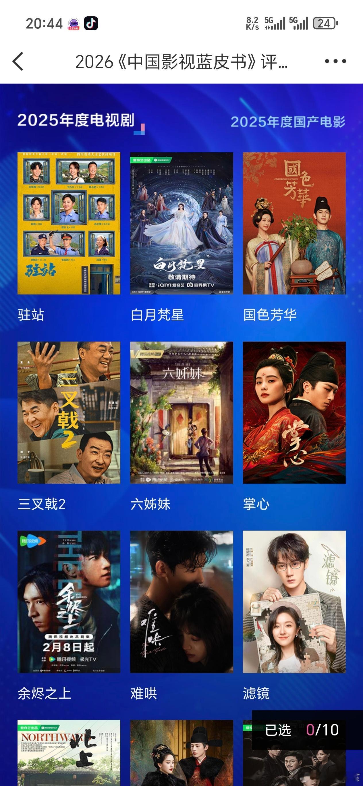 影视蓝皮书投票又来了,这个投票我觉得最有意思的一点是强制的要求每个投票ID必须选择10个作品,于是流量粉丝为了只投自家的就会选一些老戏骨的作品分票,所有人都这么干,于是最后反而是老戏骨的作品得分最高