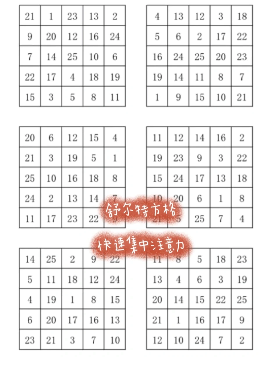 ◽️借助舒尔特方格快速集中注意力