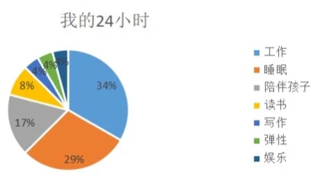 如:睡眠7小时+工作8小时+陪伴孩子4小时+娱乐1小时+读书写作1.5小时+弹性2.5小时