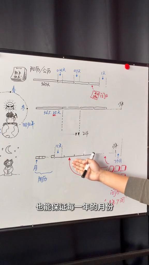 你们是不是长这么大都没有分清楚过什么叫公历、农历、阴历、阳历?下面把笔拿出来,用5分钟来搞清楚这些历法到底是怎么回事。 人类之所以会发明历法这种东西,是因为全世界的老祖宗开局都是贫下中农,这个工种必须精准的掌握季节和时间。因为这里的deadline太重要,有些人一旦错过就不在了。 季节怎么掌握?很简单,看太阳。冤有头债有主,四季就是太阳给的。比如在我们国家,地球在这的时候就是"春天",地球在这的时候就是夏天,地球在这的时候就是秋天,地球在这的时候就是冬天。这样一个完整的春夏秋冬就叫一个回归年。所以有时候大家骂老板也不能骂的太狠,毕竟在没有老板的年代,你在Q3就开始要冲业绩了。 现在大家给我死死的记住,一个完整的四季也就是一个回归年,这就是地球人标准的一年。有多标准?一会要讲的所有概念,阴历、阳历、闰年、闰月。别管它们有多么的烧脑,目的只有一个,就是为了对齐这个标准。 问题来了,这一年就摆在这个地方很难对齐吗?对的,它还真不太容易。一个标准的回归年不是365天,而是大约365.25天,然后倒霉就倒霉在0.25天了。因为但凡是一个正经人,算天数都是一天一天的算,不会出现0.25天。 所以当拿出一本日历,把这365天都撕完的时候,你以为这一年已经过完了,但其实它离标准的一年还差了0.25天。如果忽略0.25天,到了明年就会差0.5天。如果继续忽略,到了300年后就要在秋天过元旦了,不穿秋裤是对元旦最大的不尊重,这就全乱套了。 这个怎么办?别急,好在这个差距大概是0.25天,也就是说过了4年,这个差距就凑满一整天。现在你们舒服了吗?只要每过4年在日历上多加一天,这最后不就对齐了吗? 这一天应该加在哪里?理论上来说你爱加哪加哪。由于历史的原因,古代罗马人把这一天加在了第四年的二月底,毕竟二月本来只有28天,这个月它好欺负,那么这个多加出来的一天就叫做"闰日"。 这也就是为什么日历上每过四年就会出现2月29号,在这一天出生的朋友你必须非常的珍惜,因为他们每过完一个生日就有一个美国总统要下台。 这种靠观测太阳来完全对齐四季的历法就叫做"阳历",也就是今天通用的"公历"。不过在我们中国这个情况又不太一样了,比起看太阳我们更喜欢看月亮,因为我们中国的月亮上有美女。祖宗们根据月亮的一次阴晴圆缺来判断一个月,十二次阴晴圆缺大概就是一年。 这种靠月亮来定的历法就叫做"阴历"。不过因为月亮和太阳的运行有误差,阴历这十二个月下来它离一个完整的四季下来差了11天多。那咋办?还能咋办?就跟上面一样凑。不过操作会稍微复杂一点,公历是四年里面插一天,而在我们这是19年里面要插7个月。 也就是说19个标准年过完在这,而19个阴历年过完才到这,这里的差价是7个月的时间,所以我们要给它补上,最后才能对齐。这7个月就叫做闰月,这就叫19年7闰。 那么这7个月到底应该怎么插?同样的理论上来说你爱插哪插哪,全插屁股上都行。但是我们的老祖宗可不是这么随便的人,他们发明了一个神操作,他们把每一个回归年平均分成24份,这就把一个春夏秋冬均匀切片,相当于24个定位。 然后再看阴历,大家发现每过两到三个阴历年月份跟季节就差的有点多了,这个时候就插一个月进去,哪里不平插哪里。这么插下来既能保证19年之后总体对齐,也能保证每一年的月份和四季基本上对齐。总之颗粒度神对齐。 你们看外国的历法你只要会数数就行,中国的历法你得会奥数。那这种既看太阳又看月亮的历法,就叫做"阴阳合历"。换成你更熟悉的中国人的叫法,这就叫农历。它的意思是告诉全世界中国不养闲人,即便嫦娥飞到了月亮上也得出来务农。这也就是为什么在农历的日历里面每隔两三年就会出现一年13个月。 而这24个定位大家猜到了吧?这就是大名鼎鼎的"二十四节气"。因为这24节气是在回归年上切出来的,所以直接对应公历上比较确定的日期,比如清明就一定是在4月5号左右。现在明白了吧?24节气可不只是一个唯美的文化概念,它是中国人给太阳的考勤表。 这就是大家死活搞不清楚的公历、农历、阴历、阳历。现在搞清楚了吗?接下来是截屏时间,三、二、一。今天的内容是不是多少有点烧脑了?但是大家要知道不管什么样的历法,它最初的诞生都是为了农业而服务的。所以碳水在你身上贴了这么多膘,你为它烧一点脑又怎么样?