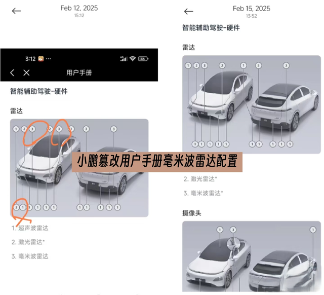 小鹏篡改用户手册毫米波雷达配置 发现小鹏减配前角毫米波雷达,并向小鹏要求解释,小鹏在答复前率先篡改用户手册。