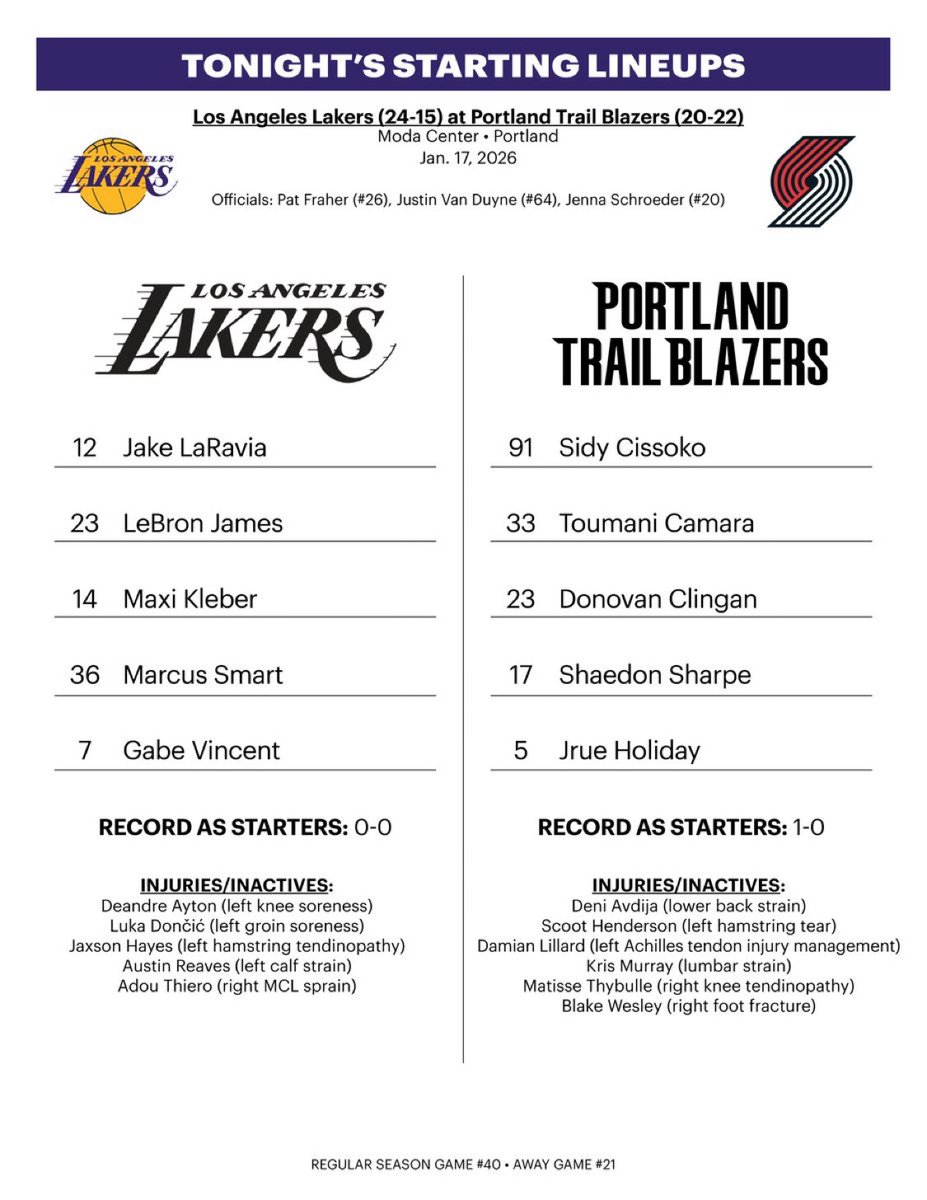 Lakersstarterstonight: