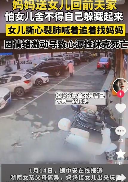 原来,人在极度痛苦下真的会气绝身亡!1月14日,湖南一女孩,本身没有任何基础病,结果因撕心裂肺哭着找妈妈,竟倒地去世了。 这场悲剧的伏笔,藏在三个月前的家庭变故里。女孩的爸妈分开后,她成了穿梭在两个家庭之间的小身影,每周轮流在妈妈的新家和爸爸这边居住。 从小就软性子的她,比同龄孩子更黏人,对妈妈的依赖更是刻在骨子里。之前每次和妈妈分开,她都要紧紧抱着妈妈的衣角不肯松手。 眼睛红得像浸了水的桃子,哽咽着反复念叨“妈妈别走”,往往要耗上大半天,在妈妈的反复安抚下才肯妥协。身边熟悉的人都知道,这孩子的心思重,分开的不舍从来都藏不住。 事发当天的午后,阳光不算刺眼,妈妈牵着小女孩的手,慢慢走到爸爸家楼下。看着孩子下意识攥紧自己袖口的小手,妈妈心里犯了难——她太清楚女儿的性子,一旦开始哭闹,又要费很久才能安抚好。 一时心急之下,她萌生了“躲一躲”的念头,想着等孩子冷静下来,再出来和她道别,趁着小女孩低头摆弄口袋里刚装的水果糖,妈妈脚步放轻,悄悄退到旁边商铺的门廊后面,借着柱子的遮挡,把自己藏了起来。 不过两秒钟的功夫,小女孩攥着糖抬头,身边熟悉的身影却没了踪迹。她手里的糖块“啪嗒”一声掉在水泥地上,糖纸摔得皱巴巴的,就像她瞬间慌了神的心。 起初她还站在原地愣了愣,圆溜溜的眼睛飞快地扫视四周,紧接着,一声带着哭腔的“妈妈”就冲破了街头的平静,声音里的慌张和无助,一下就揪住了周围人的耳朵。 喊了两声没得到回应,小女孩彻底慌了神,小小的身子立刻动了起来,朝着妈妈刚才站立的方向跑去。 她穿梭在路边停放的车辆之间,瘦小的身影在车缝里钻来钻去,鞋子蹭过地面,发出急促又杂乱的声响。“妈妈!妈妈你出来!” 她的声音越来越哑,从最初的呼喊变成了破音的嚎哭,肩膀一抽一抽地剧烈抖动,眼泪混着脸上的灰尘,很快糊满了整张小脸。 奔跑中,她没注意到路边凸起的台阶,脚下一绊,重重摔在地上,膝盖磕在冰冷的地面上,磨出了红印。 可她连揉都没揉一下,凭着本能快速爬起来,继续一边哭一边找,仿佛膝盖的疼痛远不及找不到妈妈的恐惧。 路过的行人纷纷停下脚步,有人看着心疼,上前想伸手拉她、安抚她,可小女孩像是完全没听见、没看见,眼里只有对妈妈的执念,只顾着在街头狂奔、哭喊。 就在她绕过一辆白色轿车,朝着商铺方向张望的瞬间,脚步突然猛地顿住,紧接着双腿一软,直直地向前栽倒在地,一动不动。 一开始,旁边的路人还以为她是哭累了蹲下去休息,直到过了几秒,看见她始终趴在地上没动静,才察觉到不对劲,赶紧快步凑了过去。 此时的小女孩,脸色白得像一张纸,嘴唇没有丝毫血色,紧紧抿成一条直线,无论怎么呼唤、轻拍,都没有任何回应。 现场瞬间乱了起来,有人手忙脚乱地掏出手机拨打急救电话,有人蹲在旁边试图给孩子保暖,还有人在周围不停呼喊,希望能找到孩子的家人。 等待救护车的几分钟里,有人轻轻掰开小女孩攥紧的小拳头,发现里面还紧紧捏着半块没剥开的糖果,那是妈妈给她的,她到最后都没松开。 救护车呼啸而至时,医护人员立刻对孩子进行紧急处置,可从上车到抵达医院,孩子的生命体征始终在持续下降。 医院的检查结果让所有人都陷入了沉默。医生通过全面检查确认,小女孩身体状况一直很好,没有任何心脏疾病或其他基础病,心肺、肝肾等器官功能都正常,导致她死亡的直接原因,是短时间内情绪剧烈波动引发的“心源性休克”。 医生解释,儿童代谢旺盛但器官储备功能薄弱,休克进展速度比成人快3到5倍,一旦因极端情绪诱发心源性休克,若不能及时干预,短时间内就可能导致多器官功能衰竭,甚至死亡。 孩子的姑姑赶到医院后,看着冰冷的孩子,崩溃到无法自持。她哽咽着说,孩子走的时候,小手还保持着抓东西的姿势,指尖微微蜷缩,就像还在拼命寻找妈妈的手,想要抓住那点熟悉的温暖。这个细节,让在场的医护人员和亲属都红了眼眶,满心都是遗憾和心疼。 这事儿传到网上后,很快引发了全网热议,评论区里满是揪心的话语。有人分享了自己类似的经历,说孩子分开时的哭闹背后,是极致的不安。 也有家长反思,永远不要低估孩子的情绪感知力,更不要用“躲猫猫”的方式告别。还有医学博主科普,儿童心源性休克虽不常见,但极端情绪、剧烈哭闹确实可能成为诱因,尤其是心思敏感、性格内敛的孩子,情绪积压更容易引发身体应激反应。 一场本可以避免的悲剧,给所有家长敲响了警钟。对孩子而言,亲人的告别从来都不是小事,那些看似短暂的分离焦虑,背后藏着深深的依赖和恐惧。 而这场悲剧也让我们明白,情绪从来都不是小事,尤其是对心智尚未成熟的孩子,温柔的告别、充分的安抚,才是守护他们心理健康的关键。 信源:中安在线