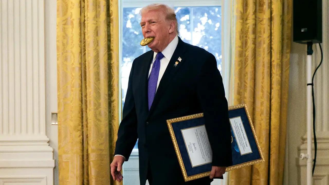 特朗普:不懂你们纠结啥,二手不二手诺奖重要吗? 重要的事,诺贝尔和平奖我已经拿到了,我又不是抢来的,是她主动送我的,她说我结束了八场战一争,没有人比我更配得上这个奖! 这个诺贝尔和平奖还是镀了黄金的,我咬咬,咬不烂,咬不烂,咬不烂,真金没错了![捂脸]