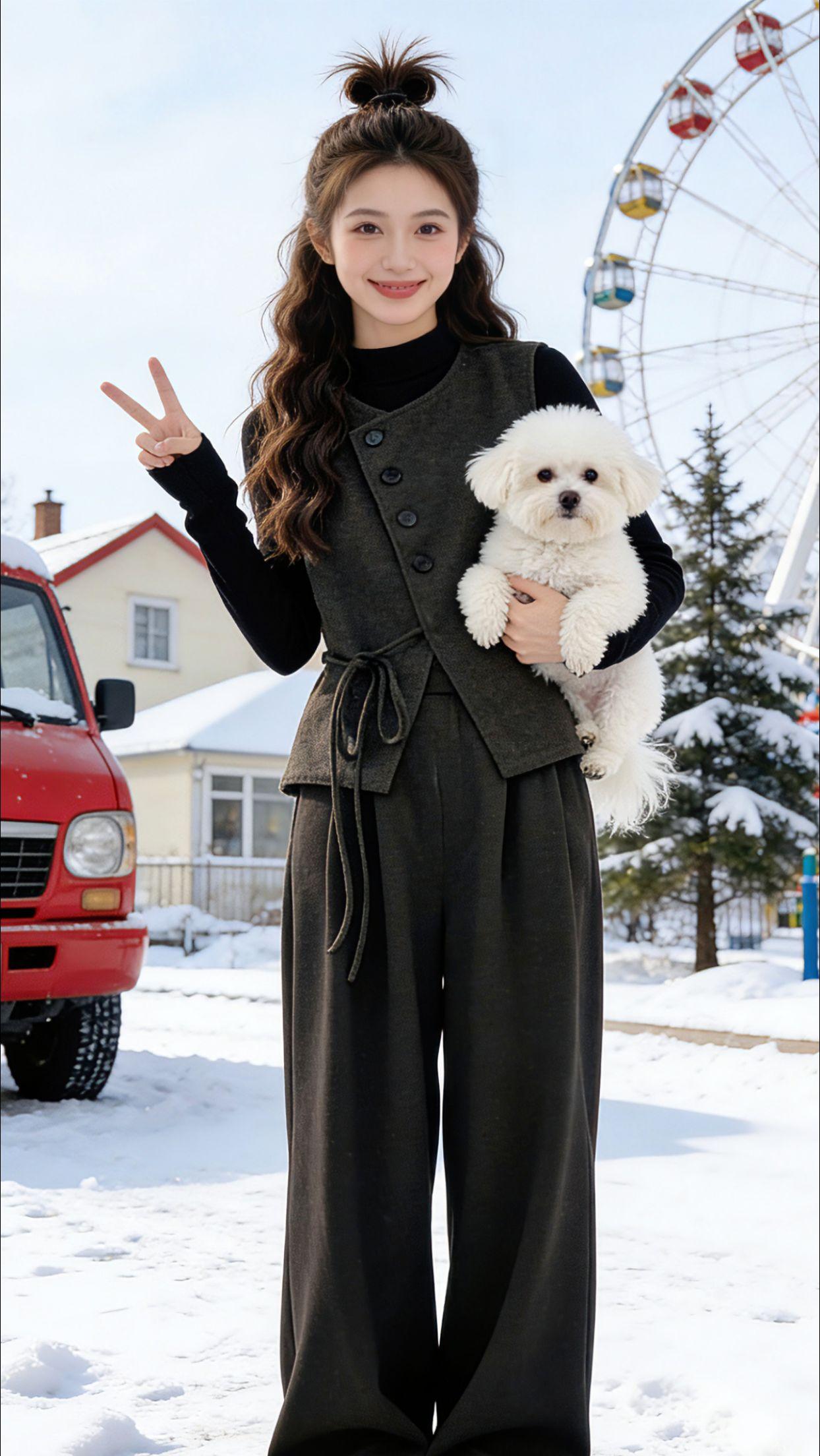 跟着Danny解锁冬日氛围感穿搭!从温暖的服装店到文艺咖啡馆,再到飘雪的街头,这套三件套全程在线。收腰马甲显比例,垂感阔腿裤遮肉显高,内搭亲肤软糯,一套搞定秋冬所有场景,不用费心搭配。 韩系松弛感直接拉满,约会通勤都适配。软fufu的面料舒适度拉满,小个子也能穿出大长腿既视感,今年秋冬的衣橱刚需,闭眼入就对了~ 梨形身材如何拿捏秋冬穿搭 毫不费力的打工人体面穿搭 用暖系氛围感打开冬日 素颜带你感受穿搭技巧的魅力