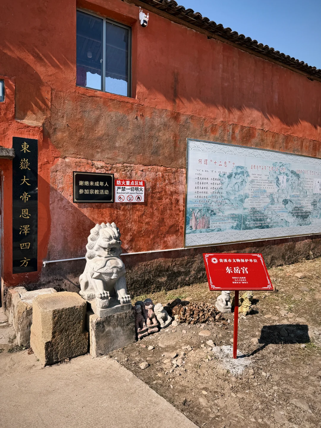 ⛰️宫内正殿奉祀东岳大帝,主掌阴司地府,还有太乙救苦天尊等神祇。站在东岳宫红墙前,可以感受到这座古老的建筑承载着一段段历史故事。