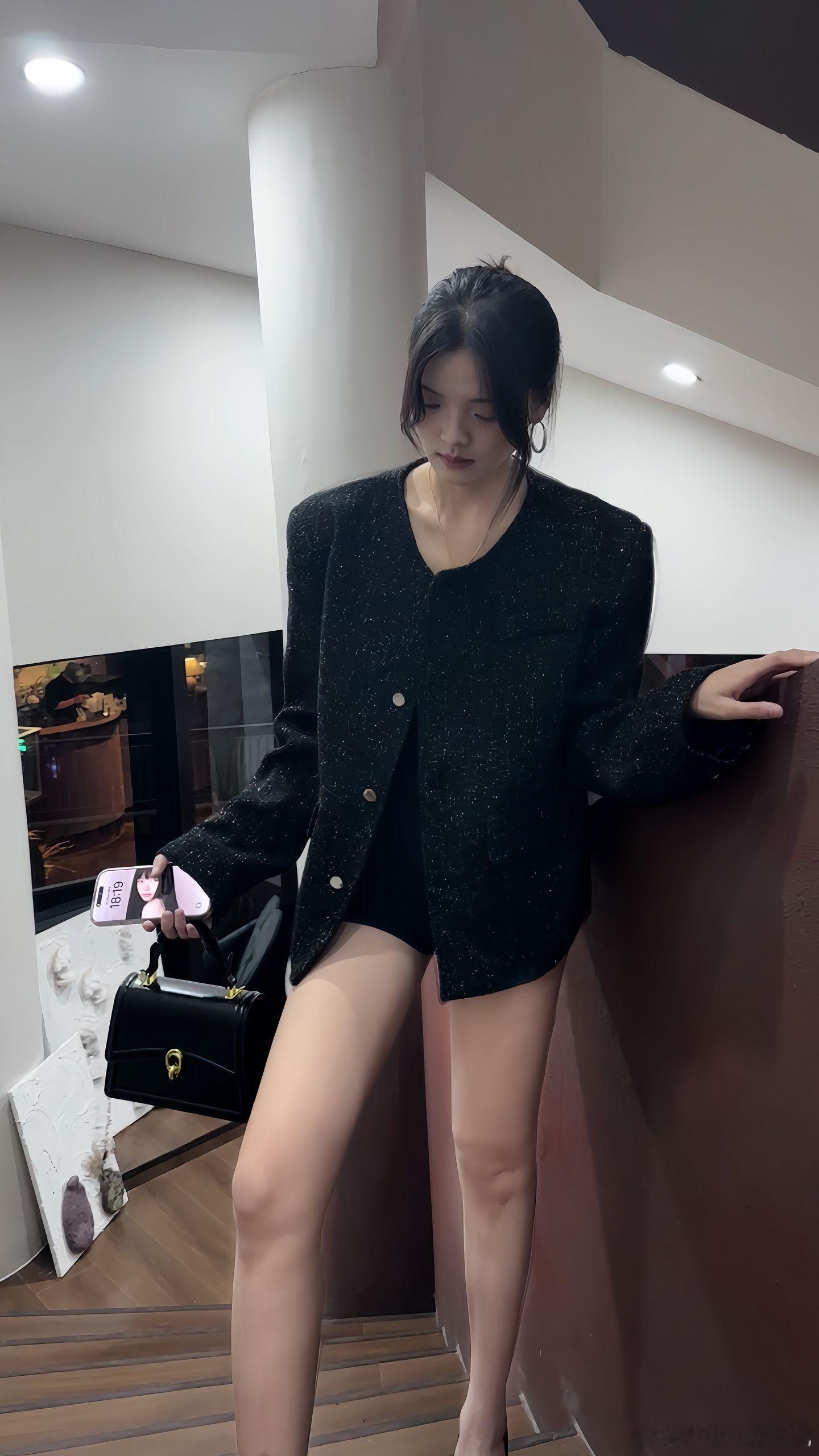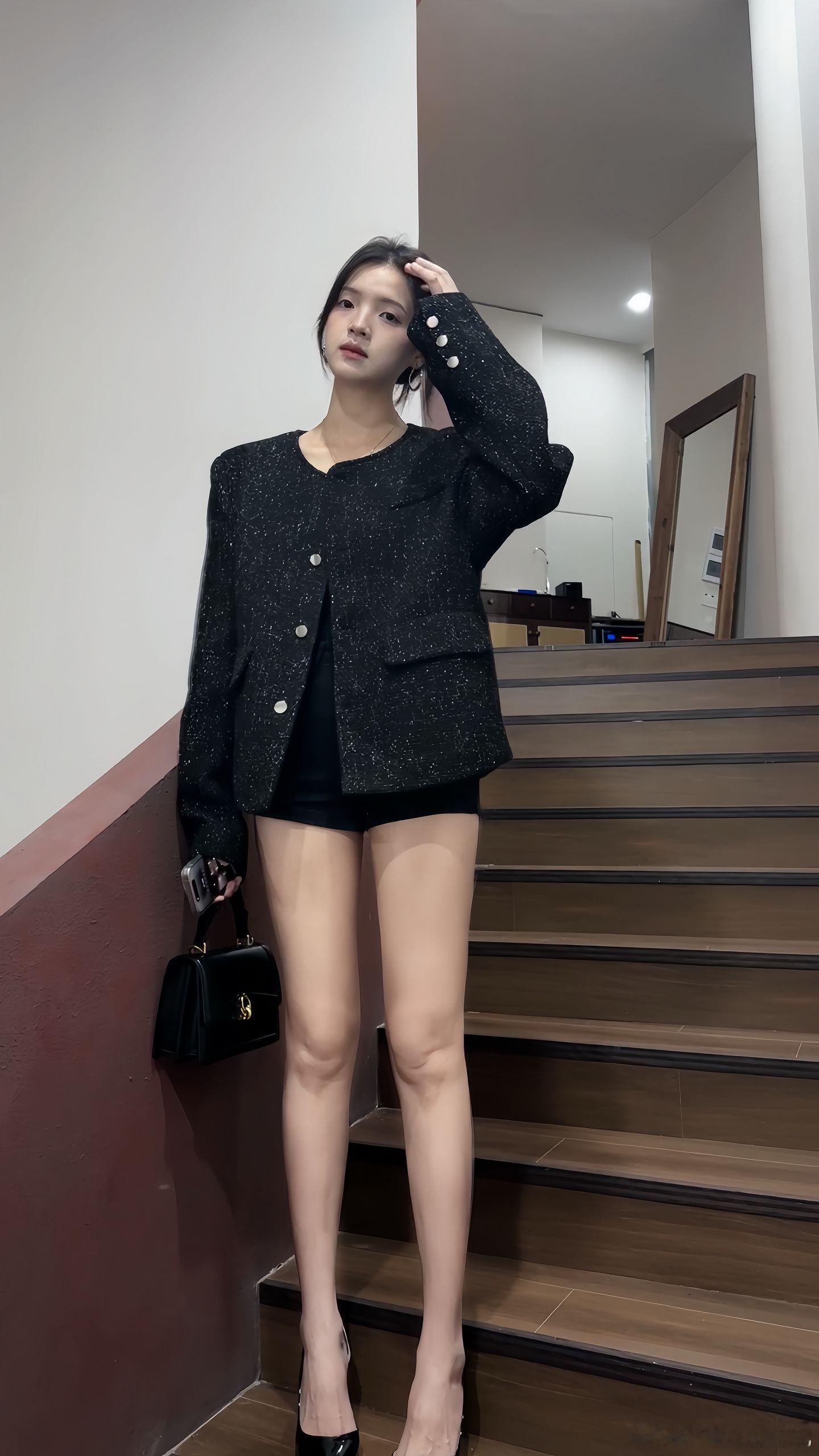 今天穿什么 黑色小香风,配黑色经典高跟鞋美女